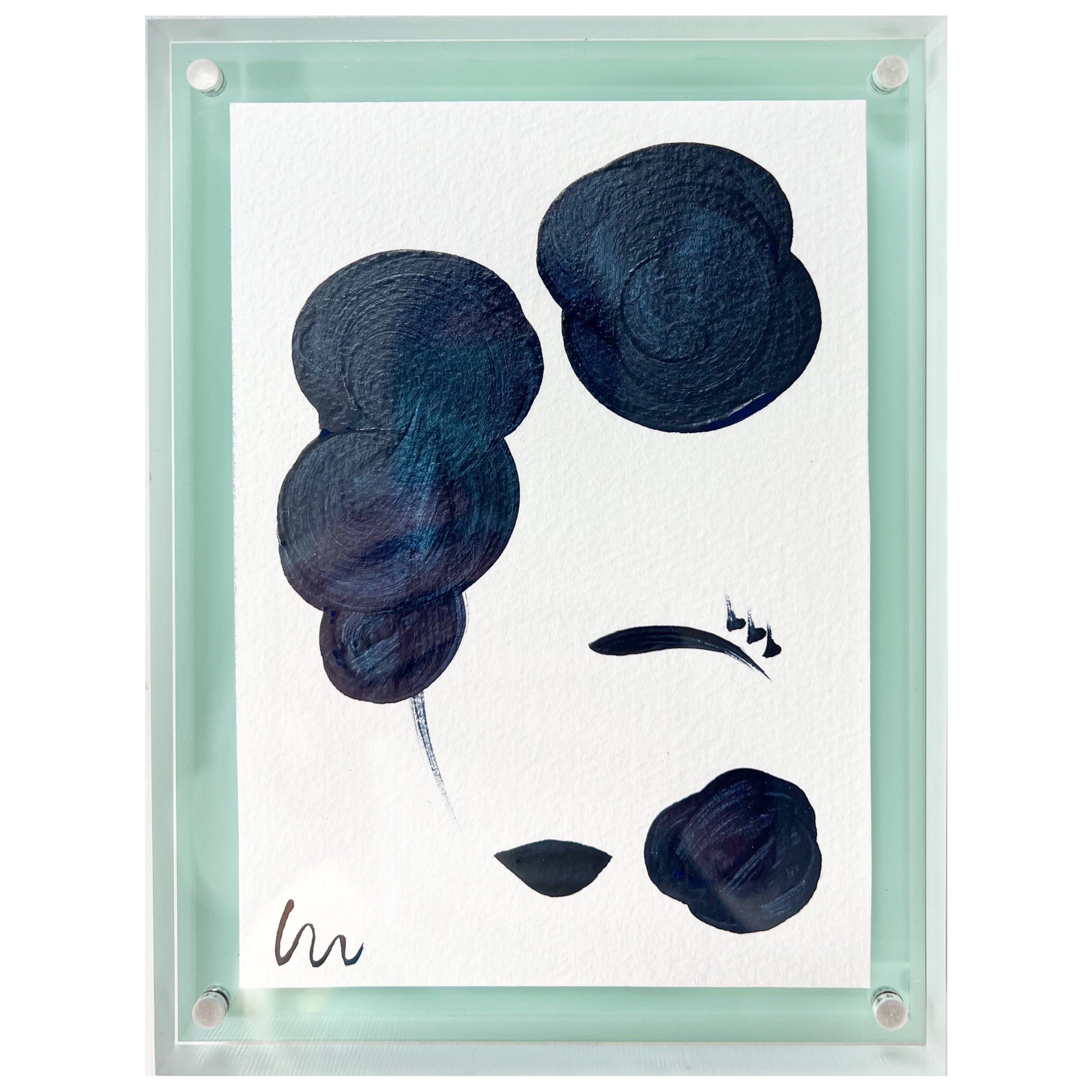 acrylic on paper, in mint green acrylic box frame