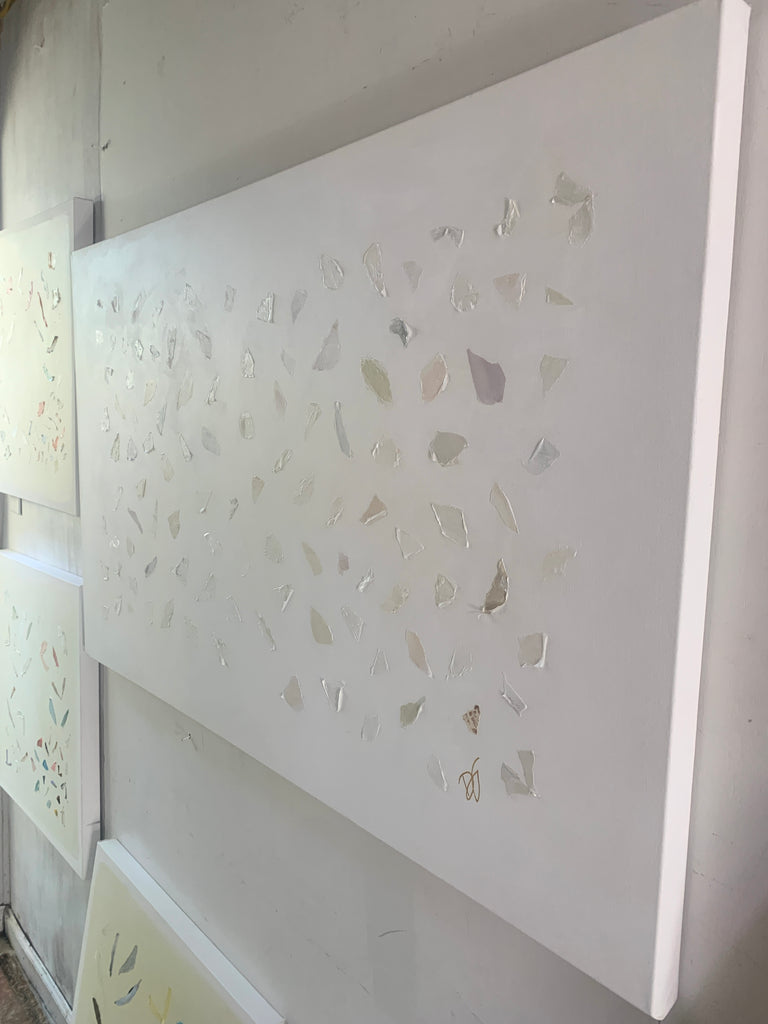 If Diana had a personal motto it would be “everything can be a treasure hunt if you try hard enough.” Growing up in Baton Rouge, Louisiana, Diana was fully trained in the art of the hunt by her mother who would drop all plans at the glimmer of an “Estate Sale Today” sign. Fortunately, this past time led to the ultimate find of a library of art and painting books which sent her in to a rabbit hole of learning about theories, lines, composition, and color that she hasn’t looked back from since. After years of self-study and practice, Diana launched her first collection to the public in fall of 2020. Her first series entitled “The Butterfly Collection” is built upon layers of color, glazers and washes carefully balanced to find the calm in the chaos. Diana names each piece after her favorite inspirational influences from authors to beaches to everyday people in her life that constantly bring her back to awe and wonder. Diana resides in Mount Pleasant, South Carolina with her husband Gabe, and her three boys Dixon, Charles, and Henry. If you are in the area and see a girl with paint chips on her hand digging for shells in the beach or through a stack of books in front of the library, please say hello!