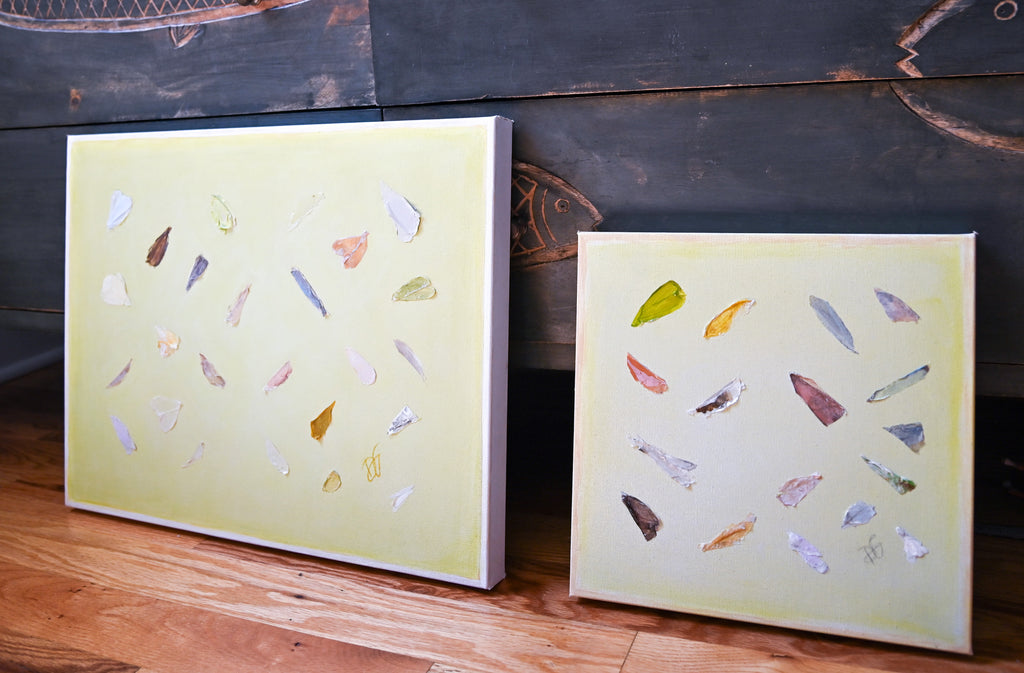 If Diana had a personal motto it would be “everything can be a treasure hunt if you try hard enough.” Growing up in Baton Rouge, Louisiana, Diana was fully trained in the art of the hunt by her mother who would drop all plans at the glimmer of an “Estate Sale Today” sign. Fortunately, this past time led to the ultimate find of a library of art and painting books which sent her in to a rabbit hole of learning about theories, lines, composition, and color that she hasn’t looked back from since. After years of self-study and practice, Diana launched her first collection to the public in fall of 2020. Her first series entitled “The Butterfly Collection” is built upon layers of color, glazers and washes carefully balanced to find the calm in the chaos. Diana names each piece after her favorite inspirational influences from authors to beaches to everyday people in her life that constantly bring her back to awe and wonder. Diana resides in Mount Pleasant, South Carolina with her husband Gabe, and her three boys Dixon, Charles, and Henry. If you are in the area and see a girl with paint chips on her hand digging for shells in the beach or through a stack of books in front of the library, please say hello!