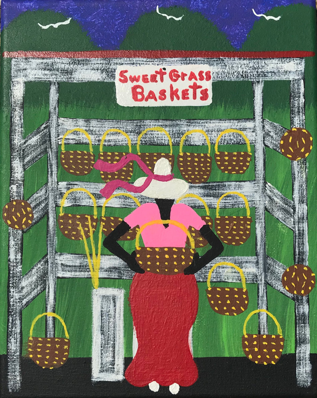 Squeakie is a self-taught artist from the rural Lowcountry whose nostalgic paintings portray a simpler way of life in Coastal South Carolina. He draws his inspiration from memories of childhood where he often worked in tobacco and cotton fields. He talks about this time in his life as "the work was hard, but life was slower, more simple- not so many distractions and bills to pay." He went on to work in factories and grocery stores until he became a house painter for nearly 25 years. Like many self-taught artists, Squeakie did not start creatively painting until later in his life. He was encouraged to do so by his Uncle Henry "Squirrel" Stone, who was a folk artist himself. One of Squirrel's clients asked for a commissioned painting of a church. Squirrel passed this commission on to Squeakie. Since that first painting, Squeakie has a resolute sense of purpose in his work. In 2007 he became a full-time artist, and now his "naive, down-home pictures" have been bought by collectors across the United States, and abroad. He says he paints more now than when he painted houses as his paintings tend to get snapped up quickly.