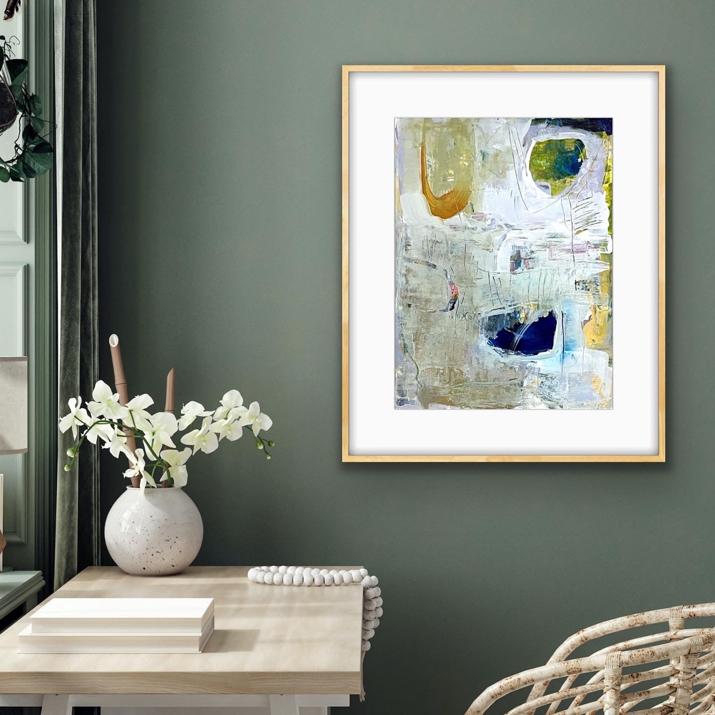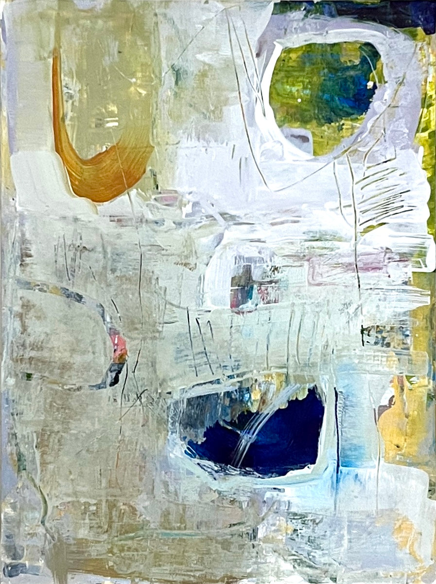 I find ultimate freedom in abstract expressionism and as such, I’m in search of the best way to convey who I am at the moment of creating. It is not to say it is a free-for-all; there is still structure within. I implement the same principles that realist painters employ with the absence of representation: composition, hierarchy, variety, juxtaposition are vital to a successful painting. But I do not limit myself to one medium or the other. I work in oil, acrylics and gouache and depending on what I’m exploring at the time I will choose one or more to express it. I also explore through a combination of paint and collage. It is through all of these various methods and mediums that I am able to share my fullest expression of self and my authenticity. My paintings ultimately are self portraits that are created from both past experiences and also future hopes and dreams. It is my goal to invoke a feeling for the viewer. When it does I have succeede