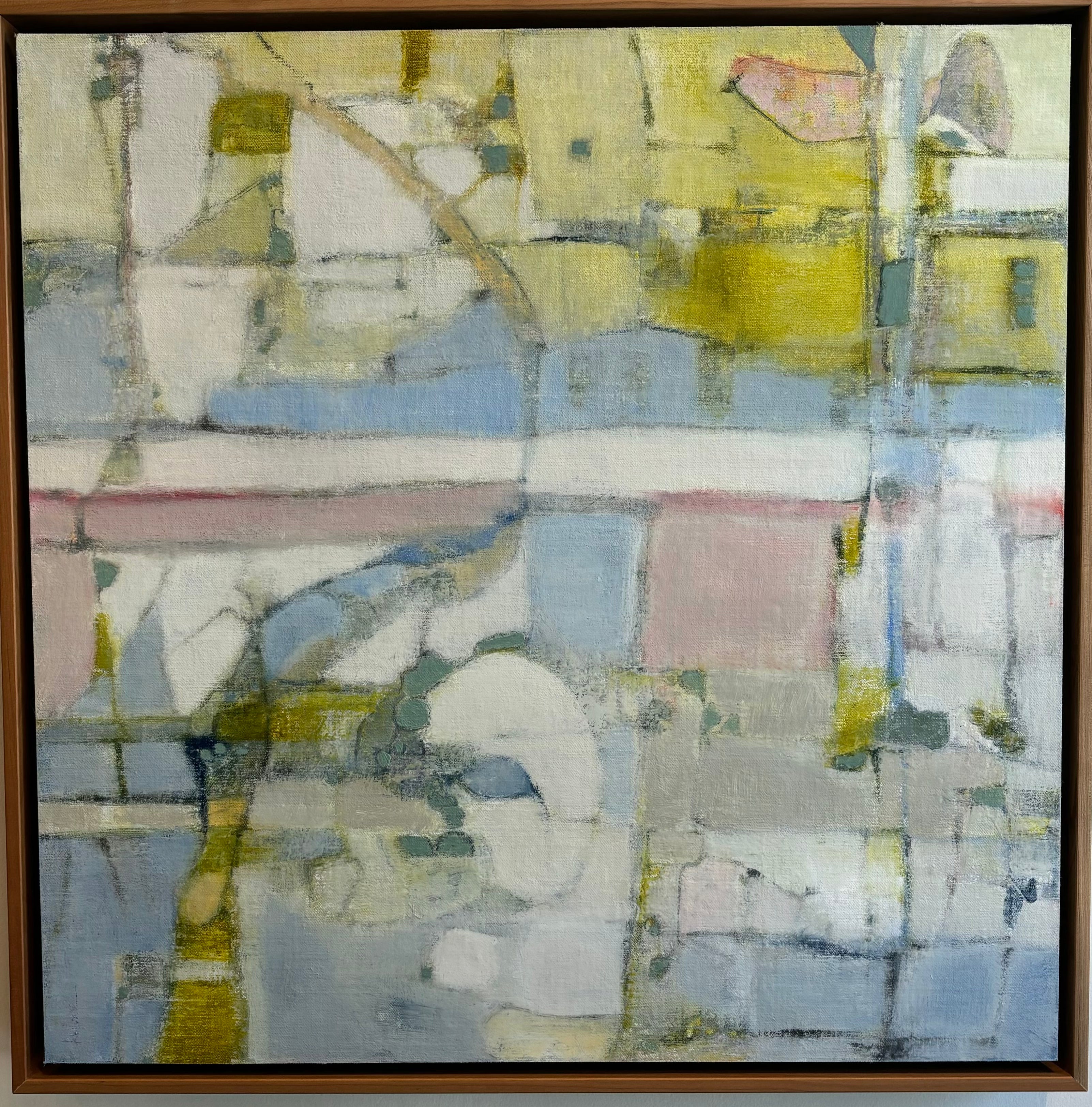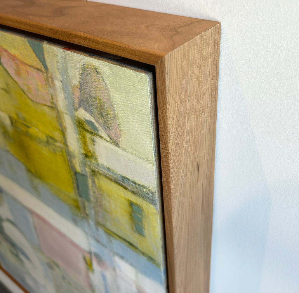 oil on linen covered birch panel in wood frame