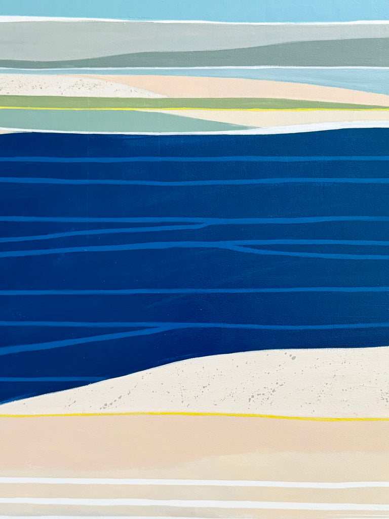 Cindy DeAntonio is a mixed media artist who uses distinct lines and shapes to create her unique and highly recognizable style. Her work is comprised of abstracts, modern interpretations of traditional lowcountry landscapes, and cubist inspired still lifes. She draws inspiration from a variety of sources including fashion, design and her natural surroundings. Cindys love of bold colors and balance are apparent in each one of her pieces. Her work have been featured in Coastal Living, Serena and Lily, Garden and Gun, and SIP magazine. Cindy grew up in Columbia, South Carolina and earned a Studio Art degree from the University of South Carolina. She currently lives on Isle of Palms, SC with her family.