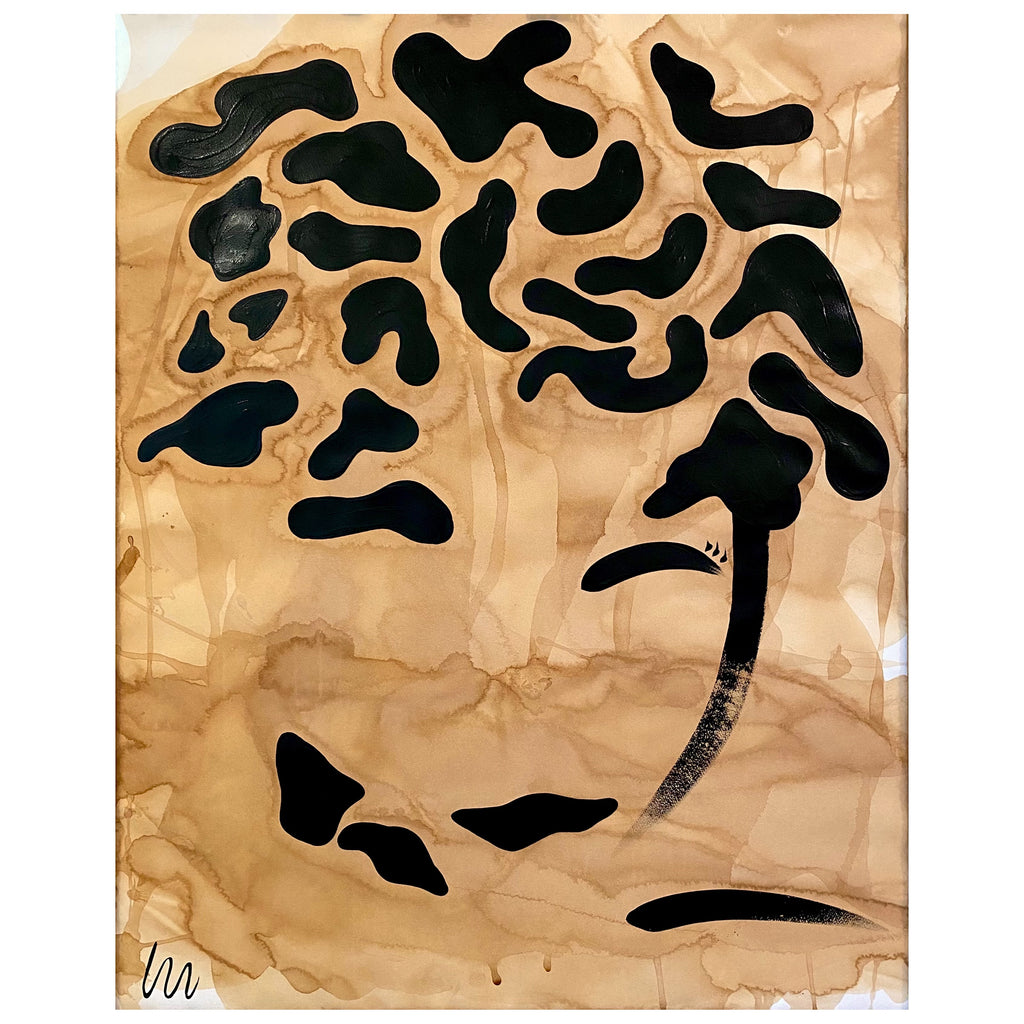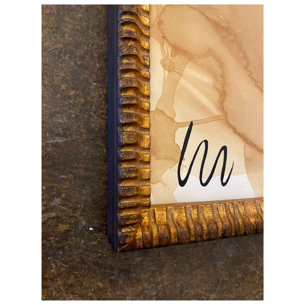 acrylic on tea stained paper, in striped gold frame with museum glass