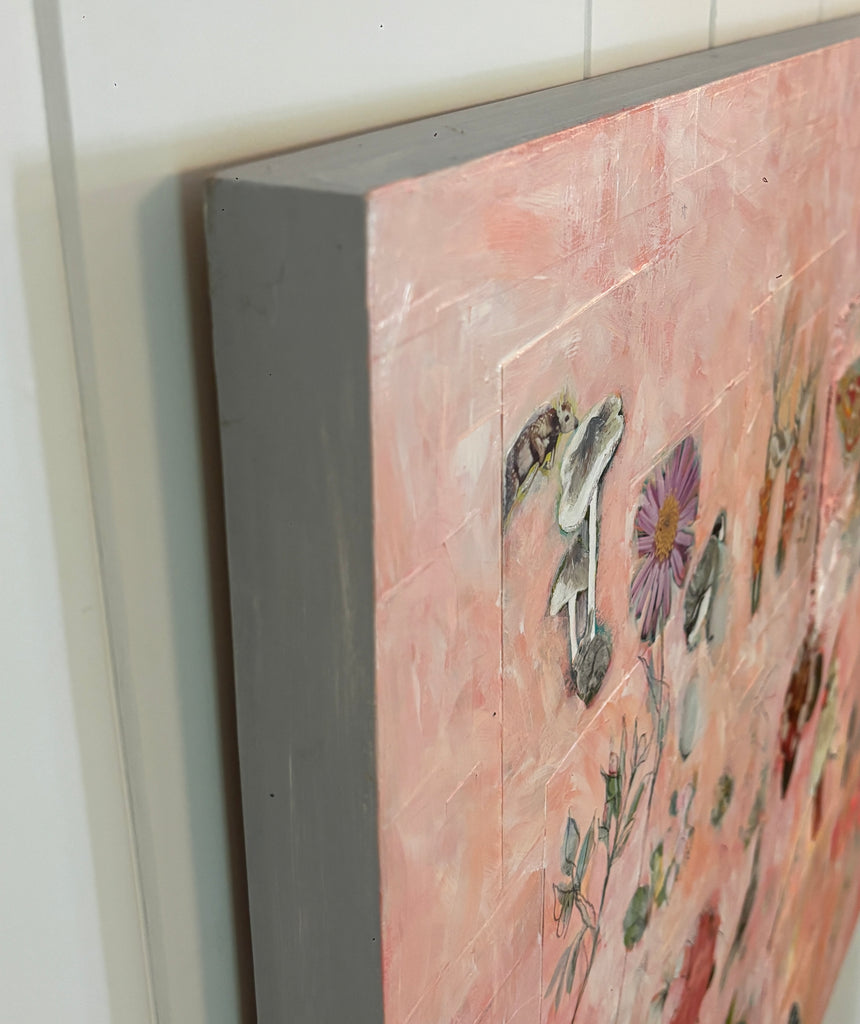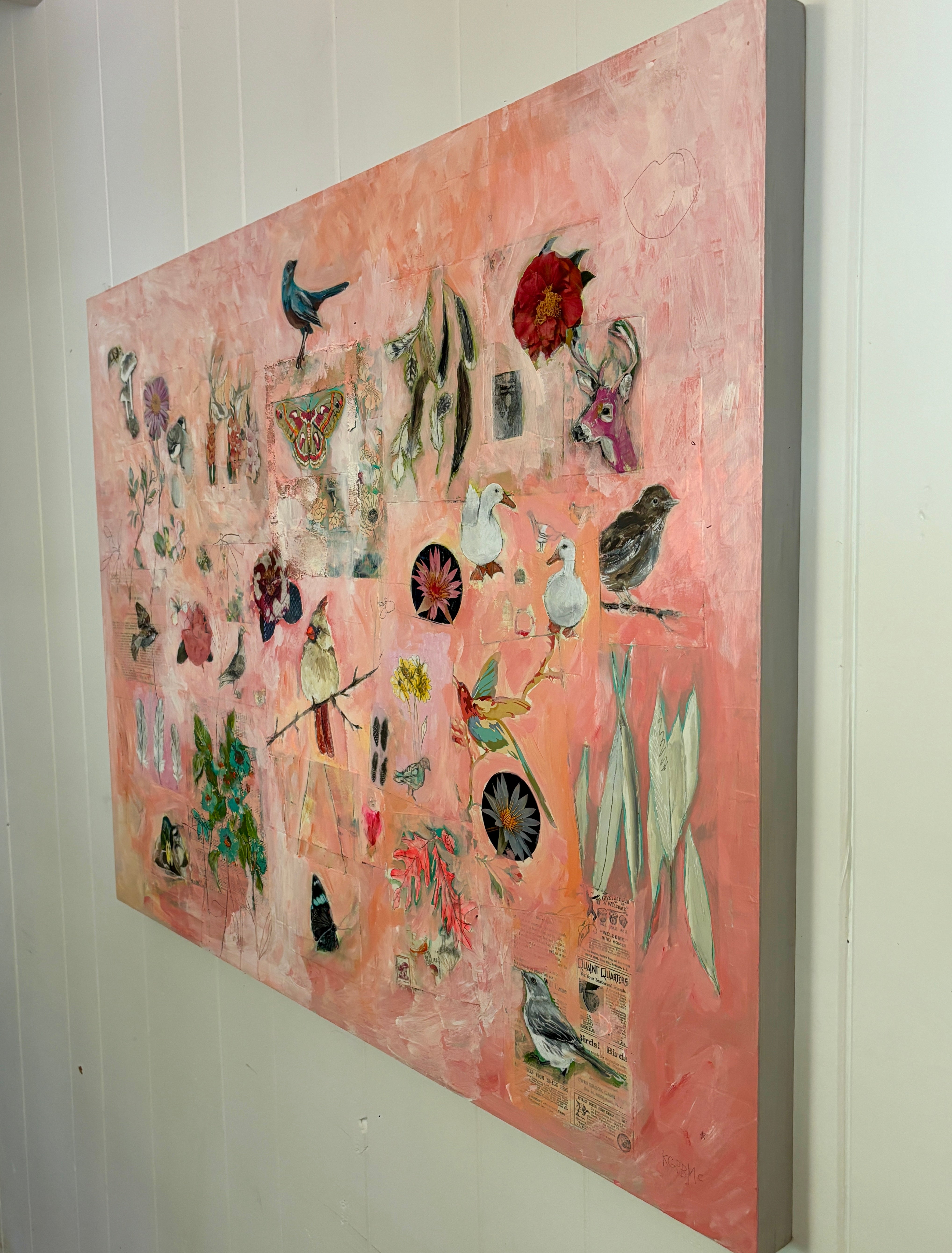 A lifelong artist, I make art because coming up with an idea is what gets me out of bed in the morning and into my studio, mercifully located in my home. So much of what I love in life is at home- my pets inside and wildlife out, nature pouring through the windows, comfortably cluttered rooms full of books and art, the forest surrounding me. My art originates with that early morning idea, a daily walk in the woods, the imagery around me. The deep connection to my surroundings is reflected in the art I make, even using pages of books in my art and the book itself as the canvas with the animals love as the subject. Animal and landscape renderings in mixed media, storytelling dioramas and large works on canvas all have a similar feel of natural wonder.
