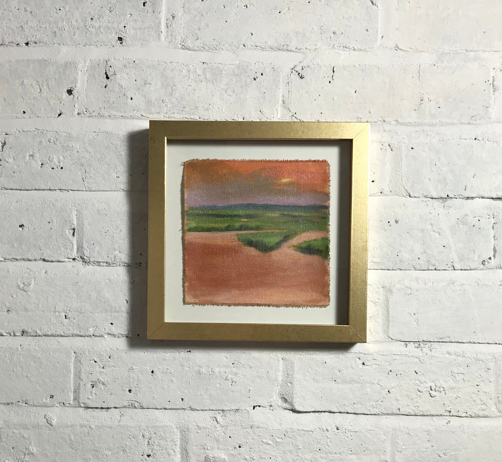 oil on unstretched canvas, floating on white mat in gold frame