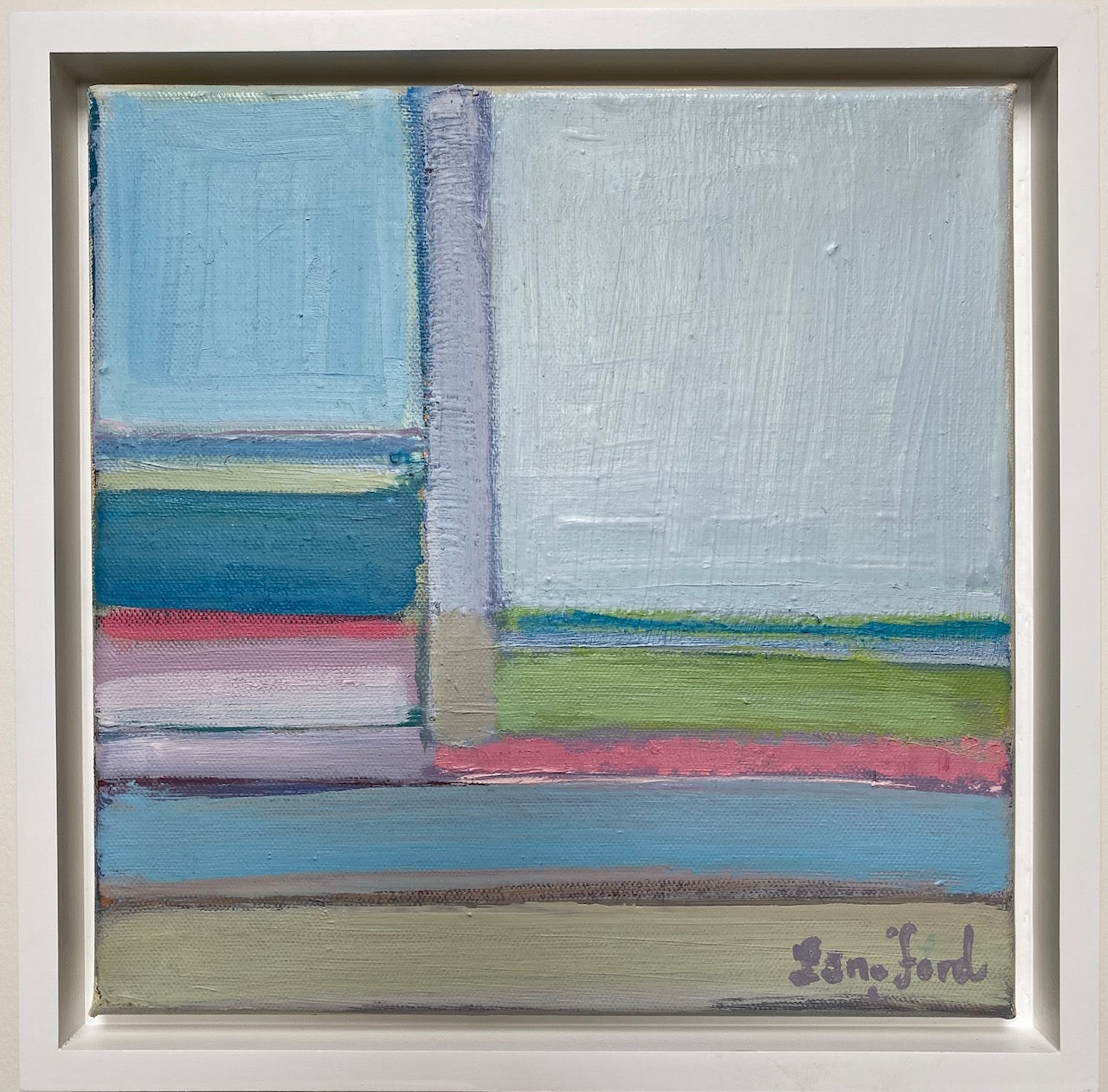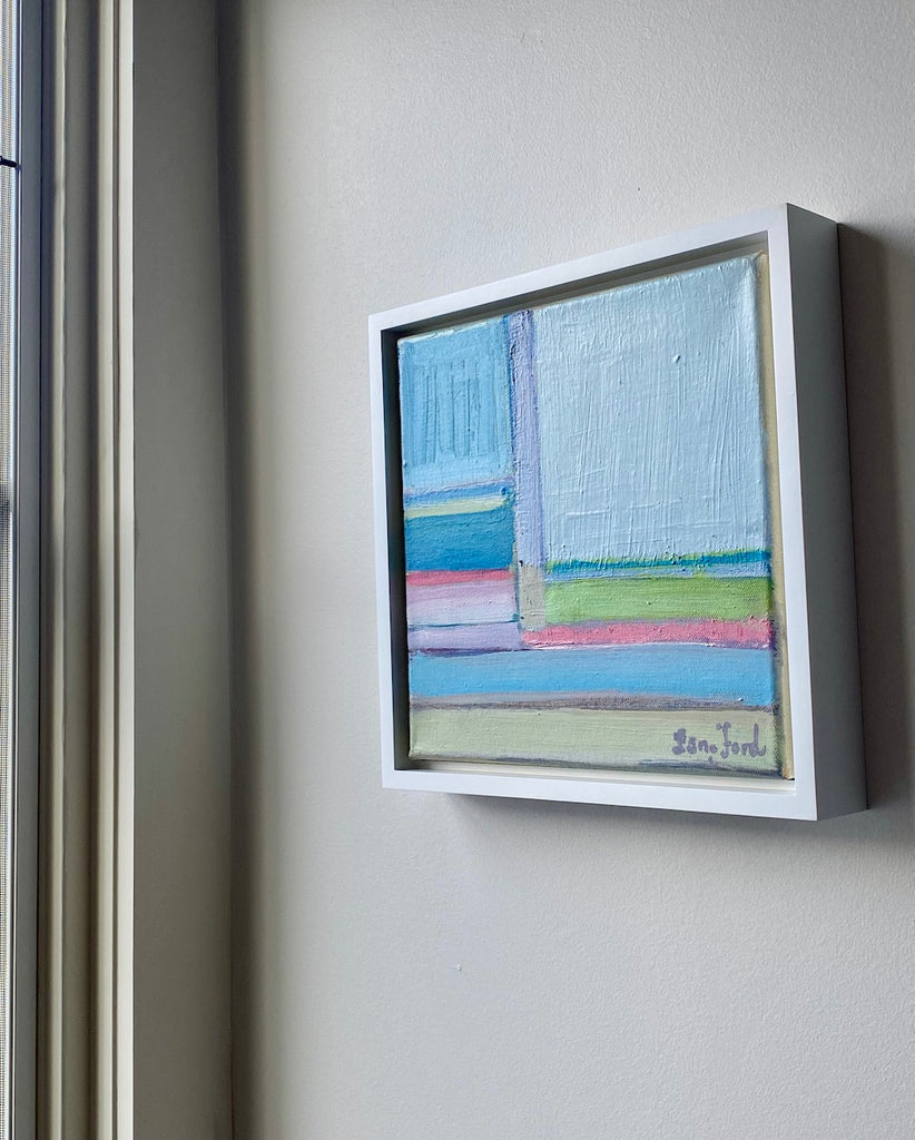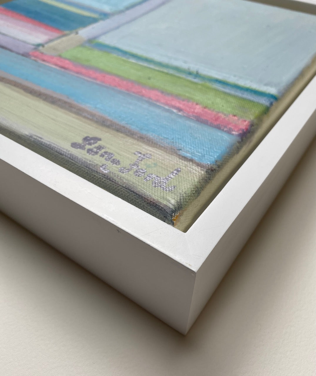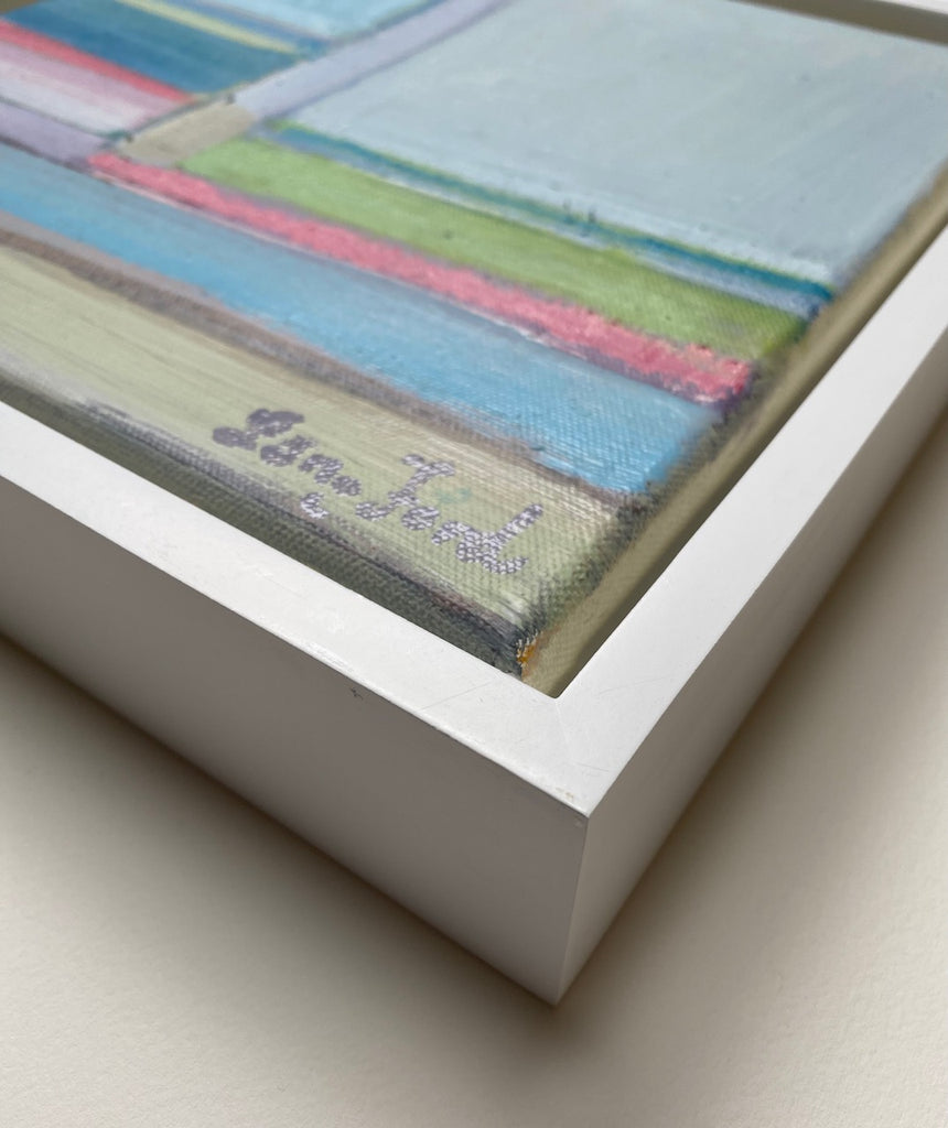 acrylic on canvas, in white floater frame