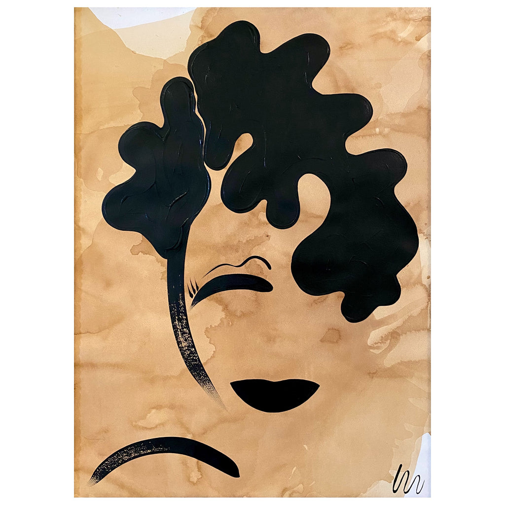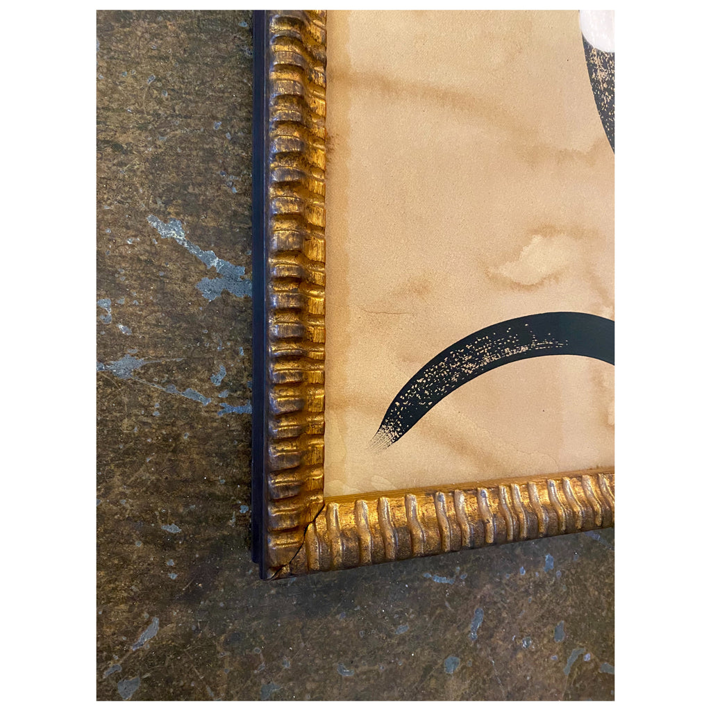 acrylic on tea stained paper, in striped gold frame with museum glass