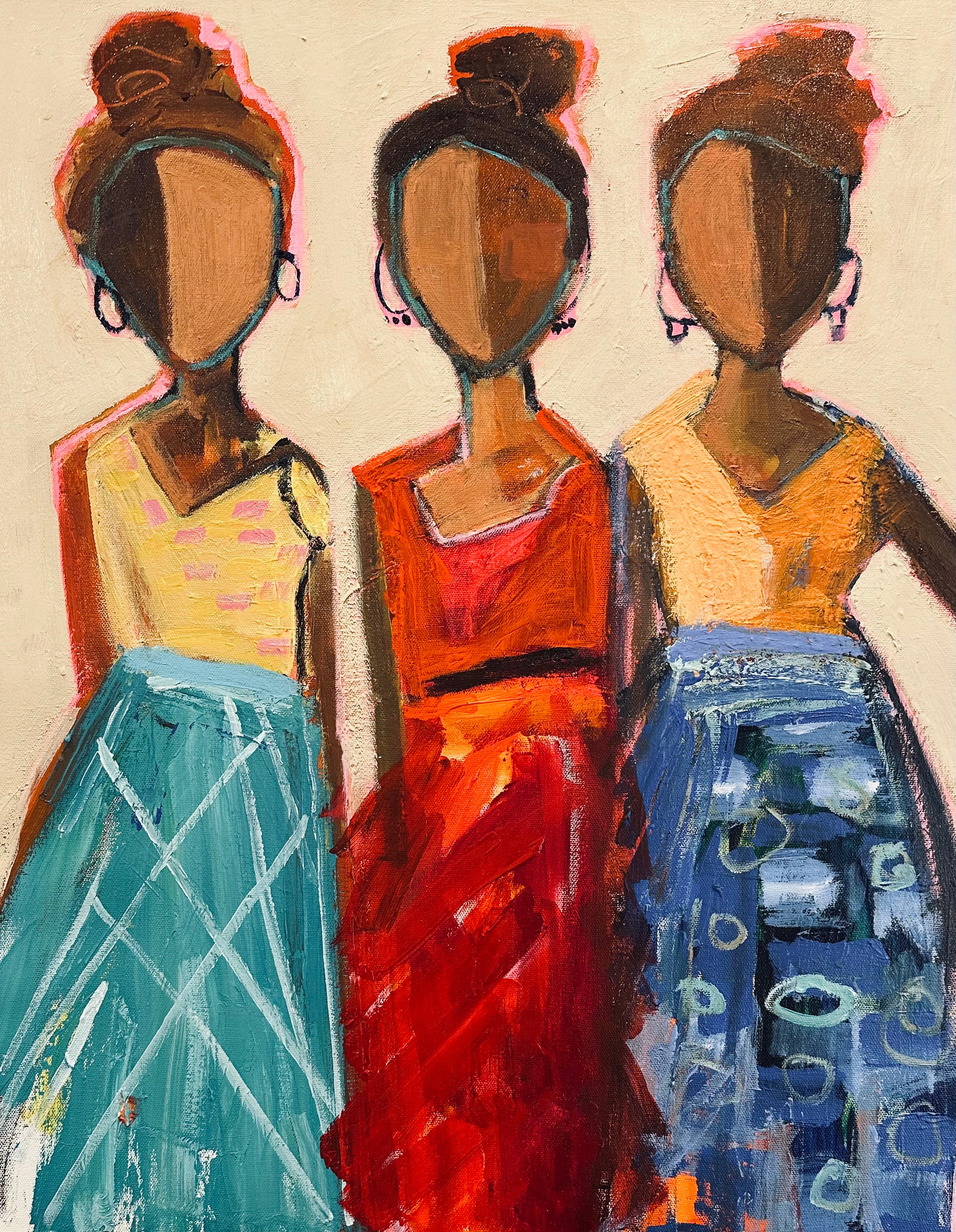 Page Morris picked up a paintbrush in third grade and never looked back. Largely self-taught, her client list reaches as far as Canada and includes syndicated columnist Kathleen Parker. Galleries representing her work include: Verve and Over the Mantle in Columbia, SC; Grand Bohemian Gallery in Charleston, SC and One Kings Lane. "My subject matter is women who are feminine, colorful, playful, strong, and beautiful. I use paper, pencil, markers, oil sticks, and paint to achieve a multi-dimensional look. I love texture because the viewers see even more when they stop to take a second look. I adhere to a rigid schedule of painting each day. Creativity only happens if I'm hard at work in my studio. I love what I do and hope my viewers can see that. It's a joyous experience to pick up a paintbrush. It's what I do and what I am."