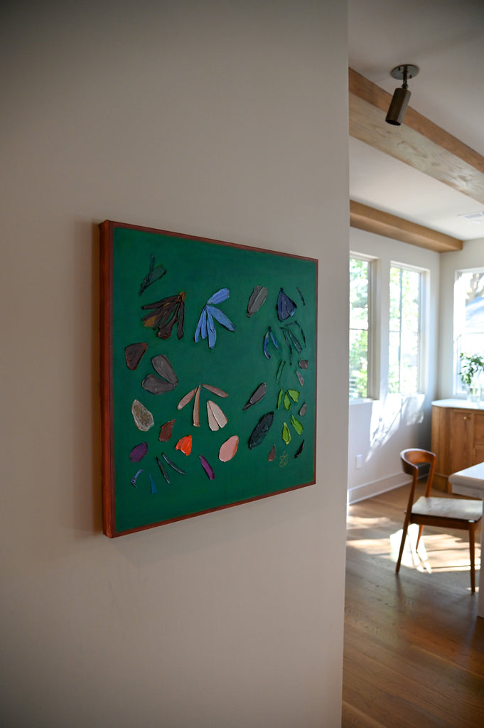 If Diana had a personal motto it would be “everything can be a treasure hunt if you try hard enough.” Growing up in Baton Rouge, Louisiana, Diana was fully trained in the art of the hunt by her mother who would drop all plans at the glimmer of an “Estate Sale Today” sign. Fortunately, this past time led to the ultimate find of a library of art and painting books which sent her in to a rabbit hole of learning about theories, lines, composition, and color that she hasn’t looked back from since. After years of self-study and practice, Diana launched her first collection to the public in fall of 2020. Her first series entitled “The Butterfly Collection” is built upon layers of color, glazers and washes carefully balanced to find the calm in the chaos. Diana names each piece after her favorite inspirational influences from authors to beaches to everyday people in her life that constantly bring her back to awe and wonder. Diana resides in Mount Pleasant, South Carolina with her husband Gabe, and her three boys Dixon, Charles, and Henry. If you are in the area and see a girl with paint chips on her hand digging for shells in the beach or through a stack of books in front of the library, please say hello!