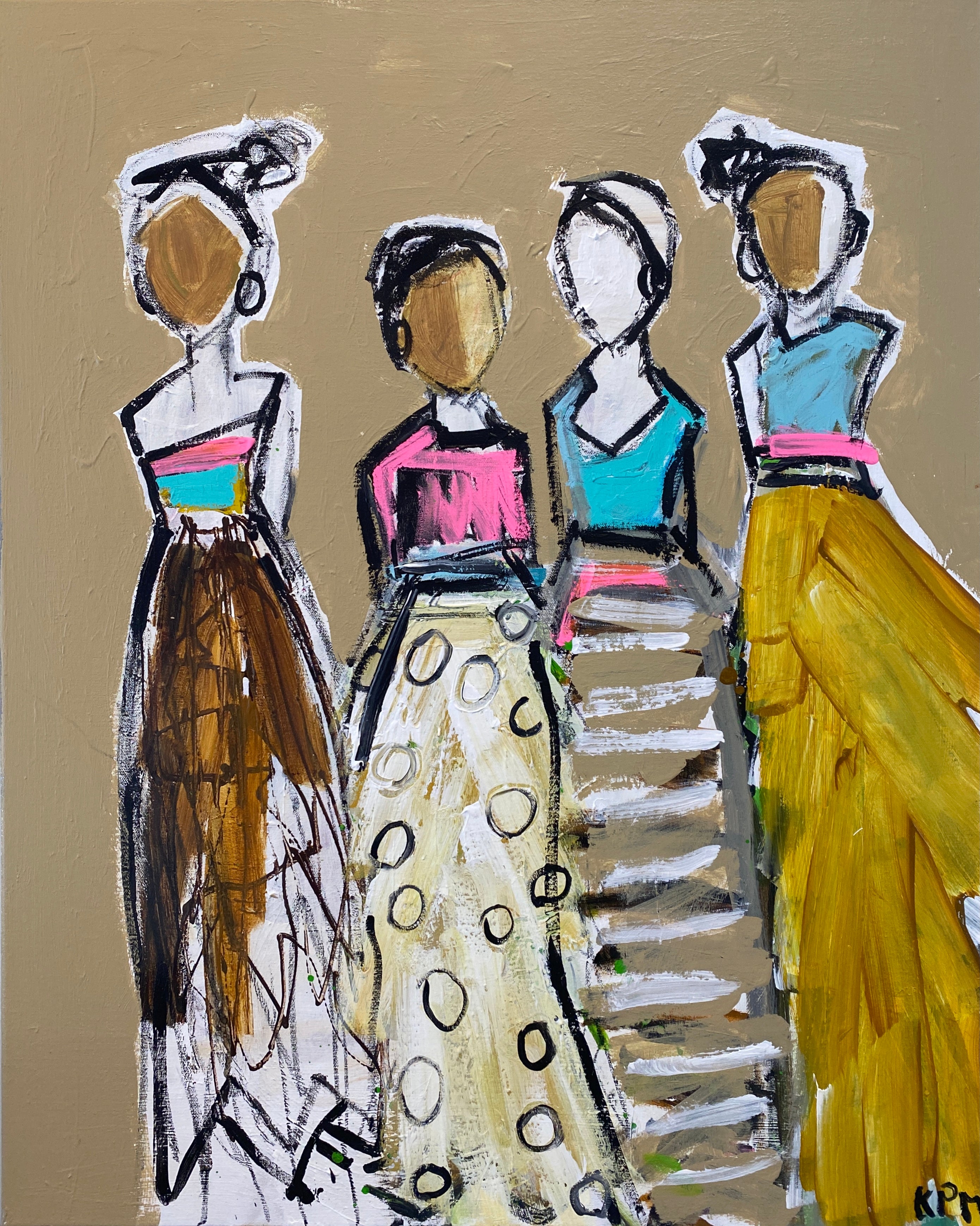 Page Morris picked up a paintbrush in third grade and never looked back. Largely self-taught, her client list reaches as far as Canada and includes syndicated columnist Kathleen Parker. Galleries representing her work include: Verve and Over the Mantle in Columbia, SC; Grand Bohemian Gallery in Charleston, SC and One Kings Lane. "My subject matter is women who are feminine, colorful, playful, strong, and beautiful. I use paper, pencil, markers, oil sticks, and paint to achieve a multi-dimensional look. I love texture because the viewers see even more when they stop to take a second look. I adhere to a rigid schedule of painting each day. Creativity only happens if I'm hard at work in my studio. I love what I do and hope my viewers can see that. It's a joyous experience to pick up a paintbrush. It's what I do and what I am."