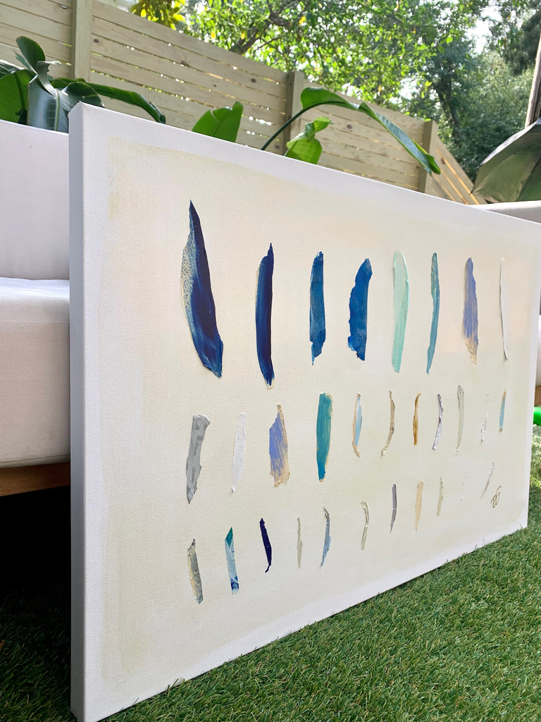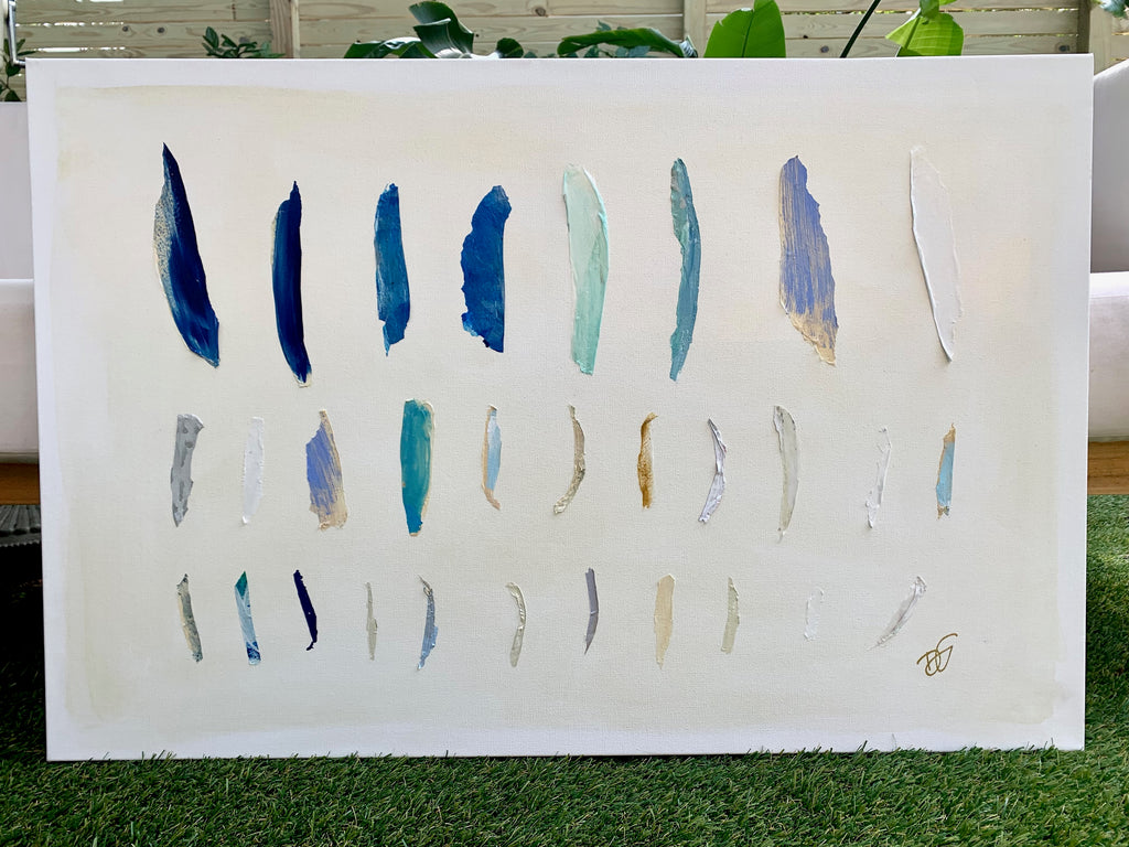 If Diana had a personal motto it would be “everything can be a treasure hunt if you try hard enough.” Growing up in Baton Rouge, Louisiana, Diana was fully trained in the art of the hunt by her mother who would drop all plans at the glimmer of an “Estate Sale Today” sign. Fortunately, this past time led to the ultimate find of a library of art and painting books which sent her in to a rabbit hole of learning about theories, lines, composition, and color that she hasn’t looked back from since. After years of self-study and practice, Diana launched her first collection to the public in fall of 2020. Her first series entitled “The Butterfly Collection” is built upon layers of color, glazers and washes carefully balanced to find the calm in the chaos. Diana names each piece after her favorite inspirational influences from authors to beaches to everyday people in her life that constantly bring her back to awe and wonder. Diana resides in Mount Pleasant, South Carolina with her husband Gabe, and her three boys Dixon, Charles, and Henry. If you are in the area and see a girl with paint chips on her hand digging for shells in the beach or through a stack of books in front of the library, please say hello!