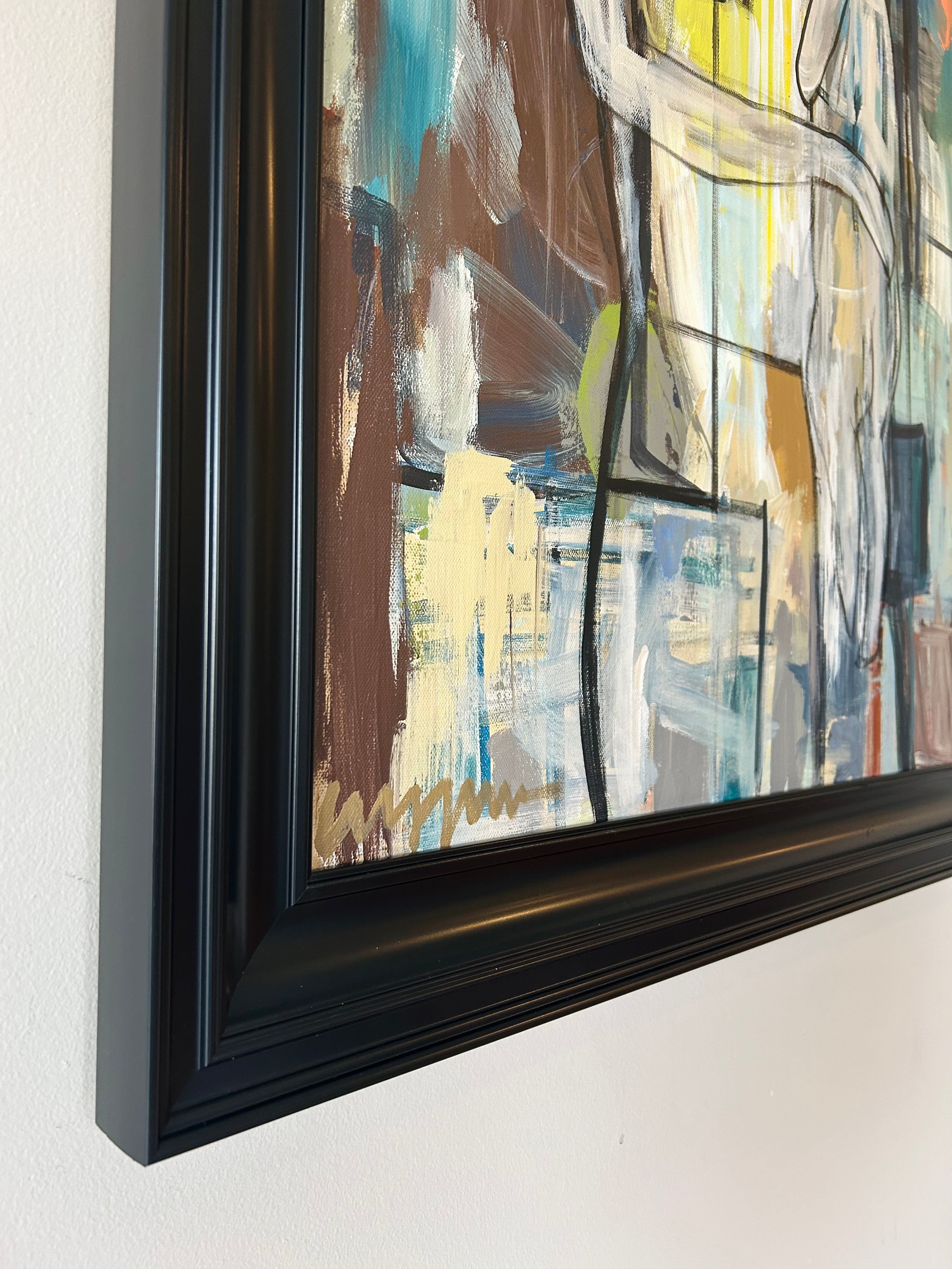 acrylic on canvas, in black frame