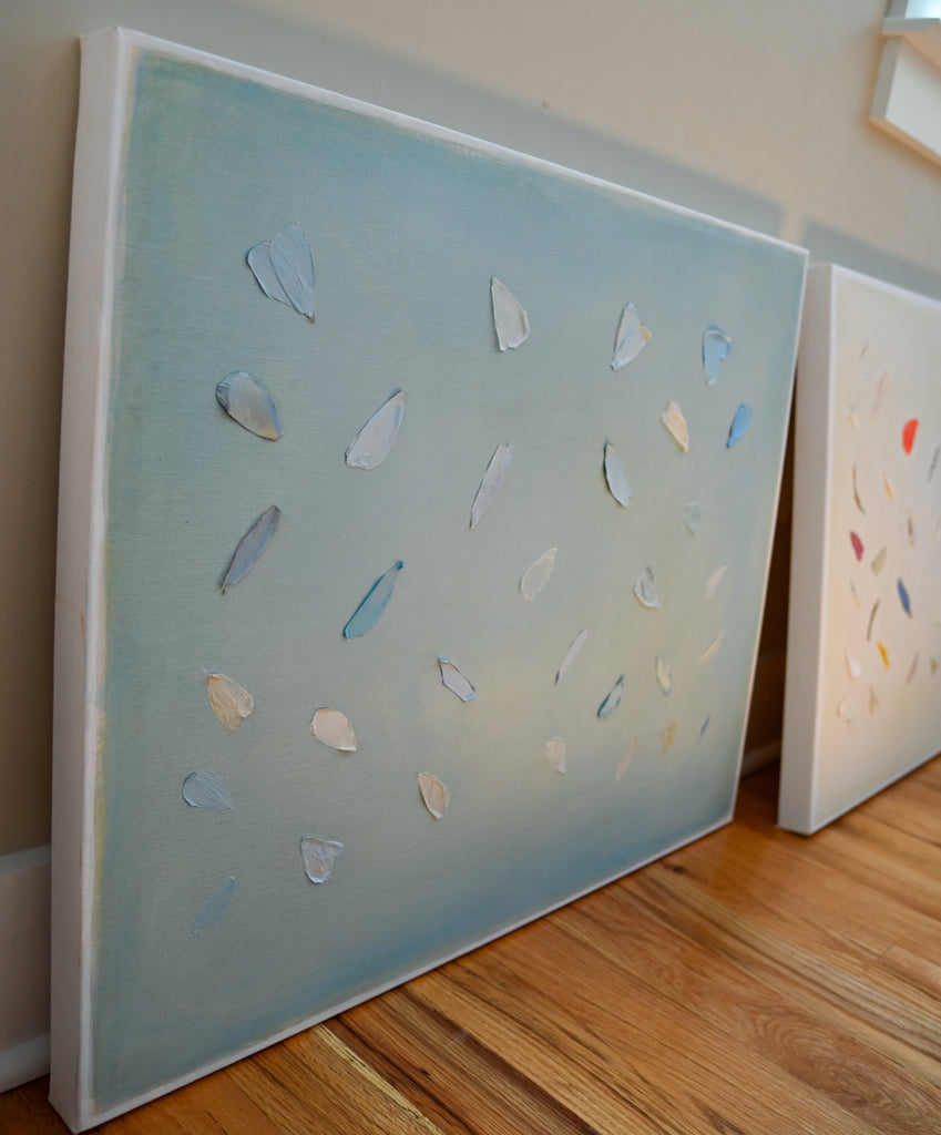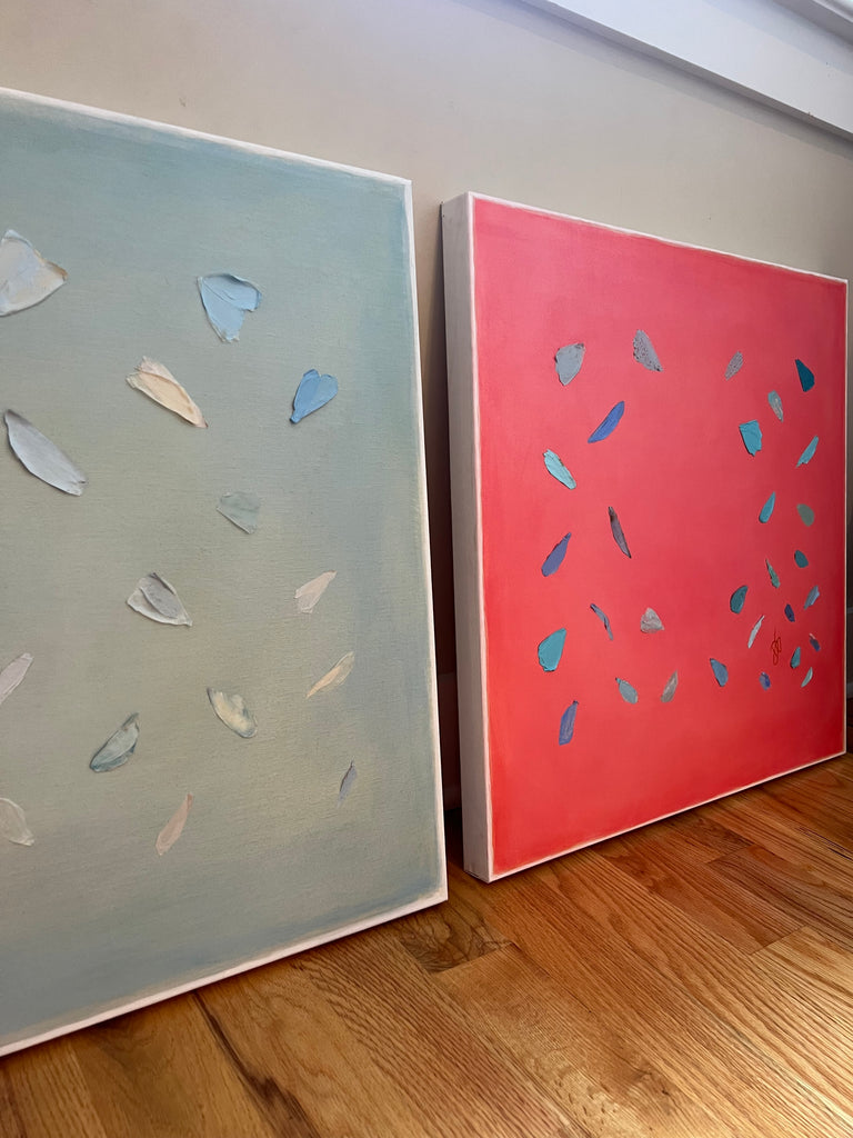 If Diana had a personal motto it would be “everything can be a treasure hunt if you try hard enough.” Growing up in Baton Rouge, Louisiana, Diana was fully trained in the art of the hunt by her mother who would drop all plans at the glimmer of an “Estate Sale Today” sign. Fortunately, this past time led to the ultimate find of a library of art and painting books which sent her in to a rabbit hole of learning about theories, lines, composition, and color that she hasn’t looked back from since. After years of self-study and practice, Diana launched her first collection to the public in fall of 2020. Her first series entitled “The Butterfly Collection” is built upon layers of color, glazers and washes carefully balanced to find the calm in the chaos. Diana names each piece after her favorite inspirational influences from authors to beaches to everyday people in her life that constantly bring her back to awe and wonder. Diana resides in Mount Pleasant, South Carolina with her husband Gabe, and her three boys Dixon, Charles, and Henry. If you are in the area and see a girl with paint chips on her hand digging for shells in the beach or through a stack of books in front of the library, please say hello!