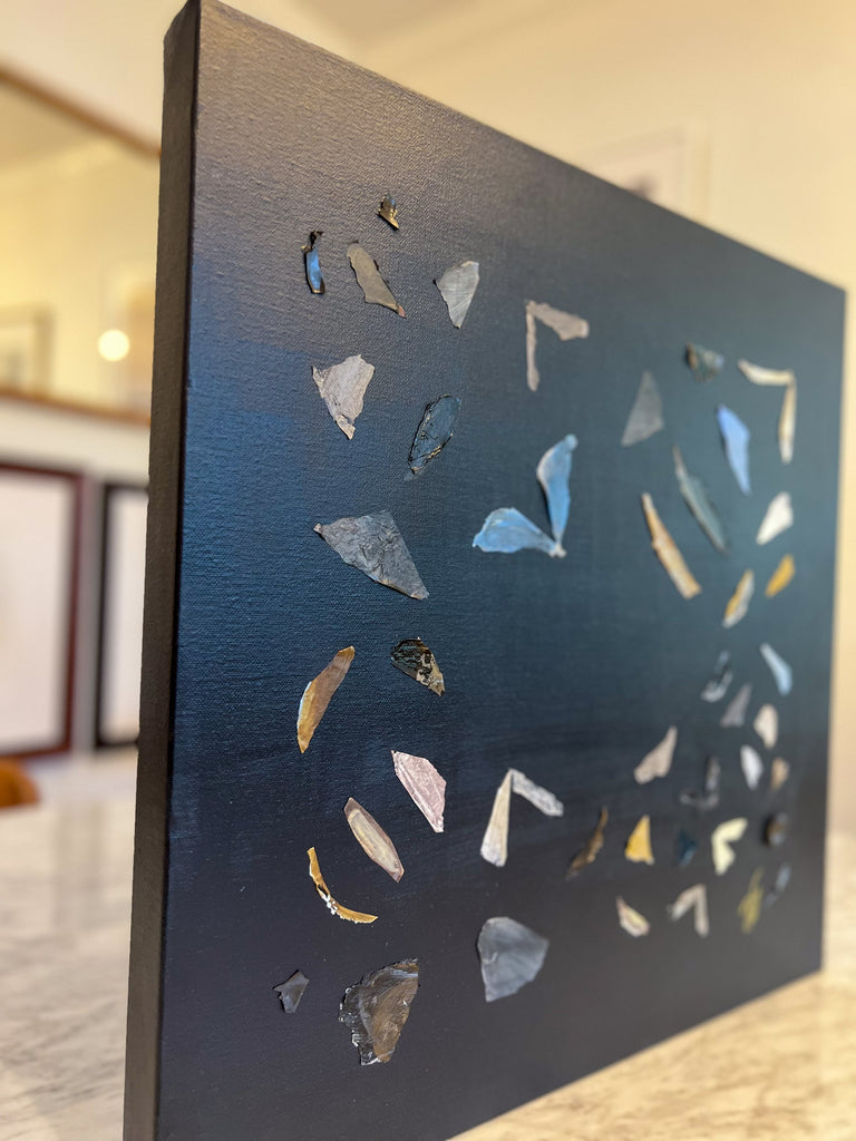 If Diana had a personal motto it would be “everything can be a treasure hunt if you try hard enough.” Growing up in Baton Rouge, Louisiana, Diana was fully trained in the art of the hunt by her mother who would drop all plans at the glimmer of an “Estate Sale Today” sign. Fortunately, this past time led to the ultimate find of a library of art and painting books which sent her in to a rabbit hole of learning about theories, lines, composition, and color that she hasn’t looked back from since. After years of self-study and practice, Diana launched her first collection to the public in fall of 2020. Her first series entitled “The Butterfly Collection” is built upon layers of color, glazers and washes carefully balanced to find the calm in the chaos. Diana names each piece after her favorite inspirational influences from authors to beaches to everyday people in her life that constantly bring her back to awe and wonder. Diana resides in Mount Pleasant, South Carolina with her husband Gabe, and her three boys Dixon, Charles, and Henry. If you are in the area and see a girl with paint chips on her hand digging for shells in the beach or through a stack of books in front of the library, please say hello!