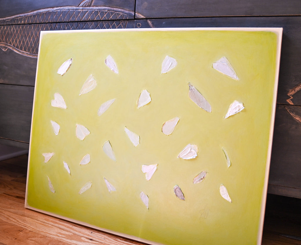 If Diana had a personal motto it would be “everything can be a treasure hunt if you try hard enough.” Growing up in Baton Rouge, Louisiana, Diana was fully trained in the art of the hunt by her mother who would drop all plans at the glimmer of an “Estate Sale Today” sign. Fortunately, this past time led to the ultimate find of a library of art and painting books which sent her in to a rabbit hole of learning about theories, lines, composition, and color that she hasn’t looked back from since. After years of self-study and practice, Diana launched her first collection to the public in fall of 2020. Her first series entitled “The Butterfly Collection” is built upon layers of color, glazers and washes carefully balanced to find the calm in the chaos. Diana names each piece after her favorite inspirational influences from authors to beaches to everyday people in her life that constantly bring her back to awe and wonder. Diana resides in Mount Pleasant, South Carolina with her husband Gabe, and her three boys Dixon, Charles, and Henry. If you are in the area and see a girl with paint chips on her hand digging for shells in the beach or through a stack of books in front of the library, please say hello!