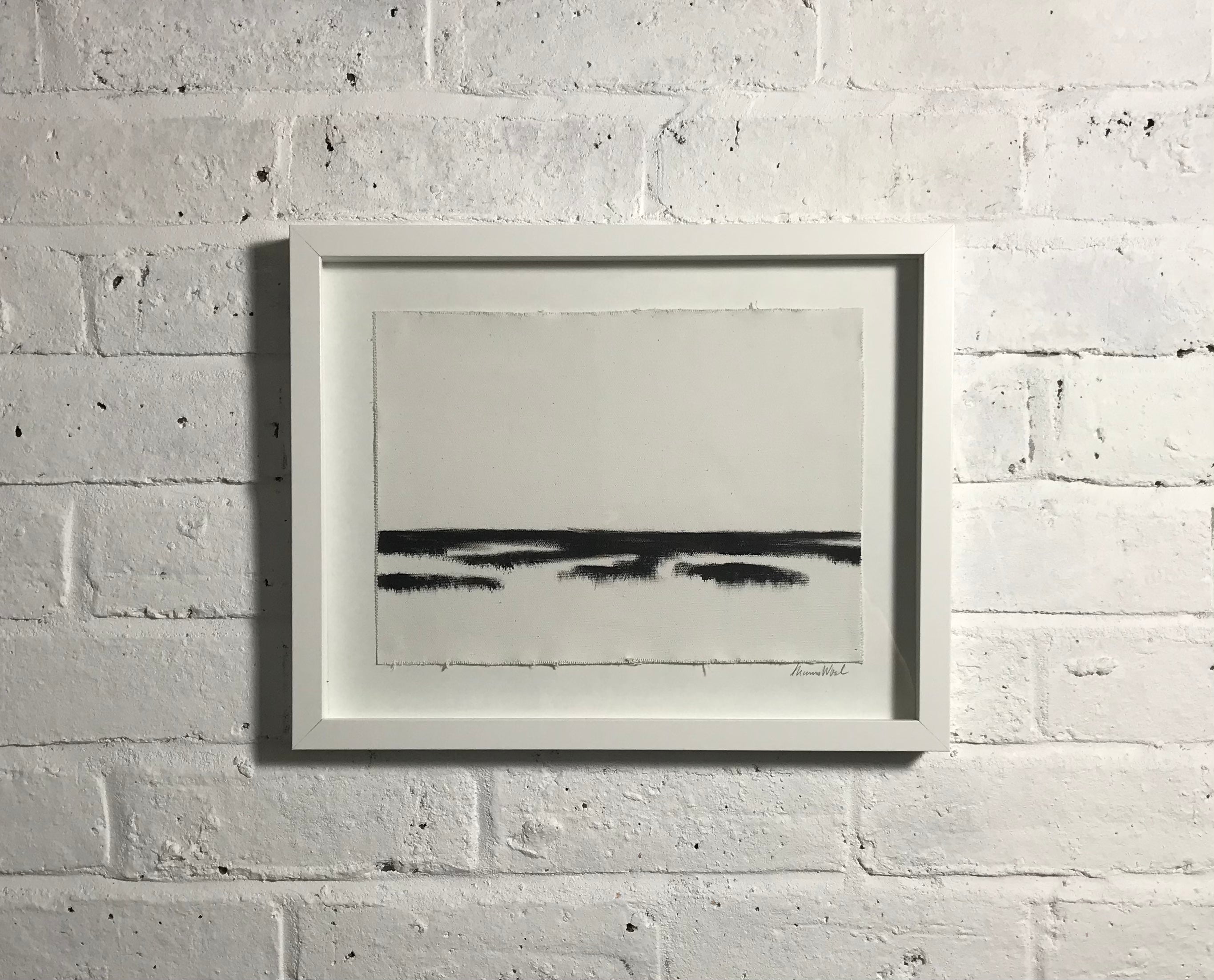 oil on unstretched canvas, in white frame