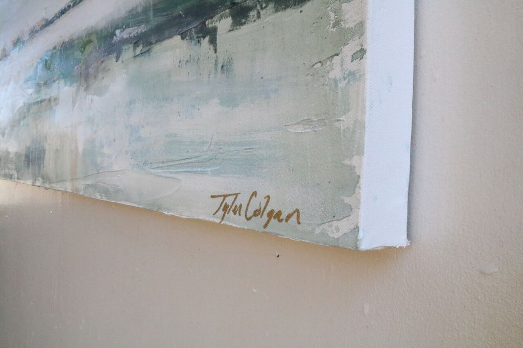Atlanta artist Tyler Colgan was born in Montgomery, Alabama. She knew early on that she would have a career in art and began painting in high school. She went on to receive a Bachelor’s Degree in studio art with an emphasis on painting at Hollins University in Virginia, where she spent a semester abroad studying art and interior design in Florence, Italy. After college she earned a degree in Interior and Environmental Design at the University of California, Los Angeles. Her professional work began with a combined ten years managing projects for Madeline Stuart in LA and Jackye Lanham in Atlanta. Since moving to Atlanta in 2000, she has continued to work on design projects and paints out of her home studio. She is drawn to landscapes and abstracts, inspired by natural elements and color. She lives in Buckhead with her husband and two daughters. “Whether on a canvas or in a room, color is my starting point. I have always been drawn to anything with a patina, faded colors that give the feeling of being worn, loved, and imperfect.”