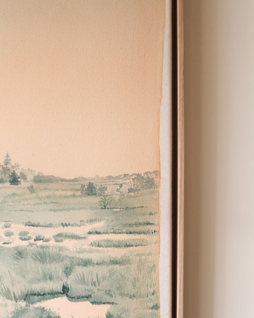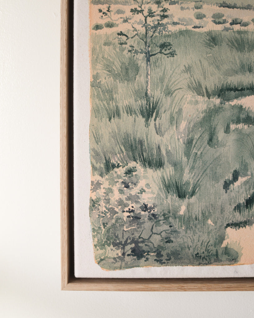 acrylic on gallery wrapped canvas, in natural wood floater frame