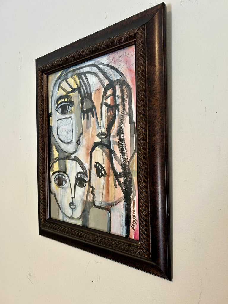 watercolor, acrylic, and oil pastel on paper with frame