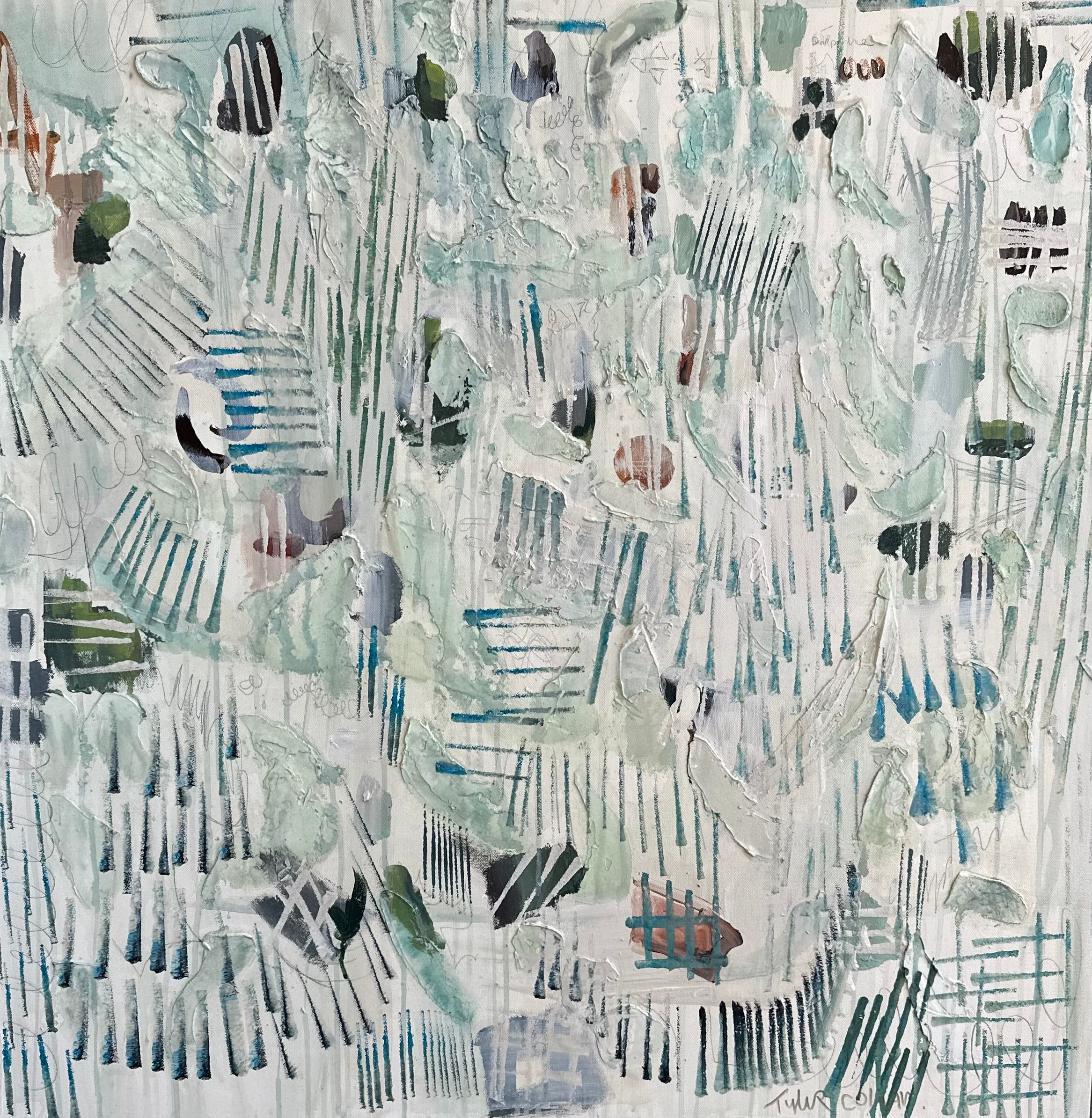 Atlanta artist Tyler Colgan was born in Montgomery, Alabama. She knew early on that she would have a career in art and began painting in high school. She went on to receive a Bachelor’s Degree in studio art with an emphasis on painting at Hollins University in Virginia, where she spent a semester abroad studying art and interior design in Florence, Italy. After college she earned a degree in Interior and Environmental Design at the University of California, Los Angeles. Her professional work began with a combined ten years managing projects for Madeline Stuart in LA and Jackye Lanham in Atlanta. Since moving to Atlanta in 2000, she has continued to work on design projects and paints out of her home studio. She is drawn to landscapes and abstracts, inspired by natural elements and color. She lives in Buckhead with her husband and two daughters. “Whether on a canvas or in a room, color is my starting point. I have always been drawn to anything with a patina, faded colors that give the feeling of being worn, loved, and imperfect.”