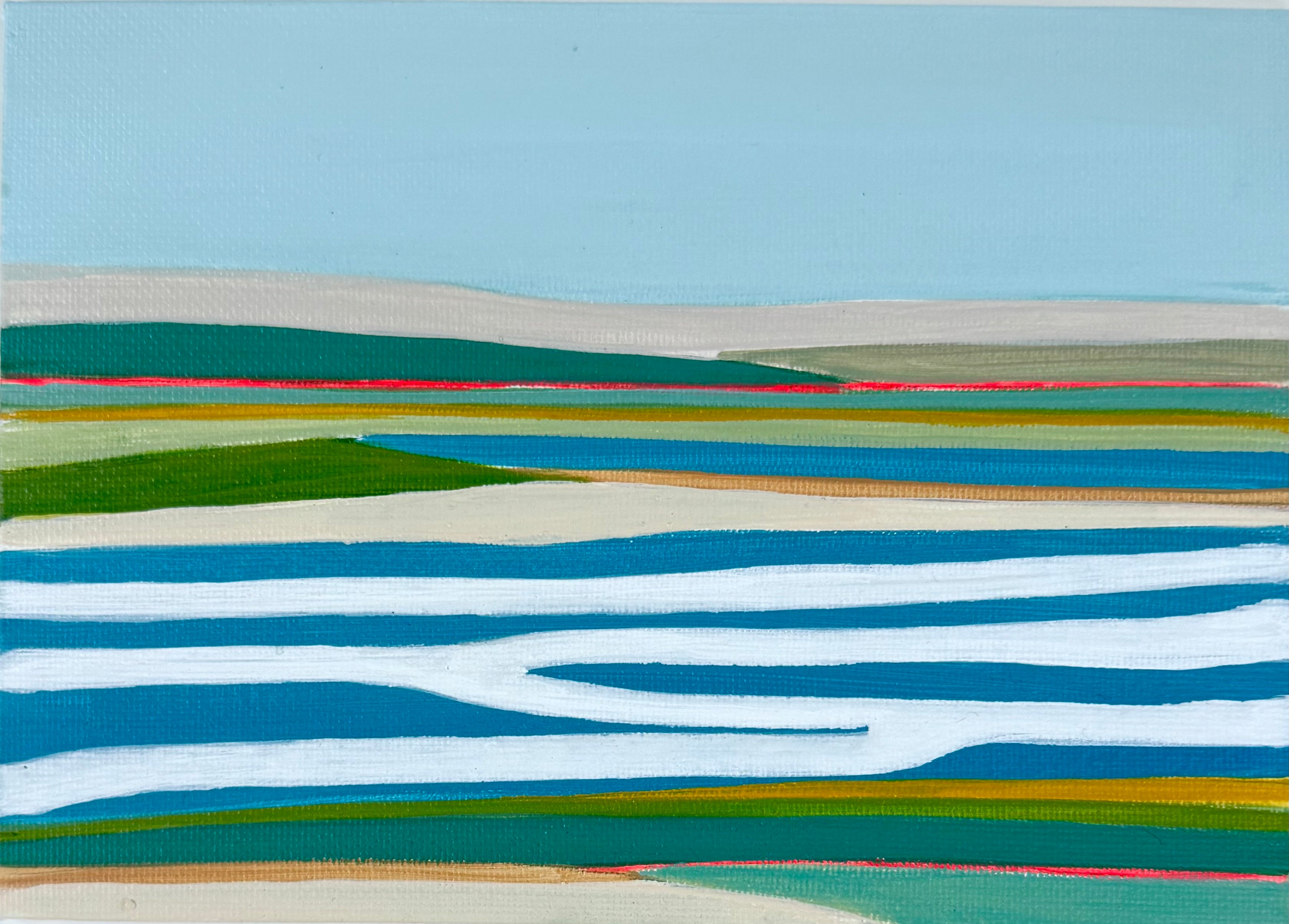 Cindy DeAntonio is a mixed media artist who uses distinct lines and shapes to create her unique and highly recognizable style. Her work is comprised of abstracts, modern interpretations of traditional lowcountry landscapes, and cubist inspired still lifes. She draws inspiration from a variety of sources including fashion, design and her natural surroundings. Cindys love of bold colors and balance are apparent in each one of her pieces. Her work have been featured in Coastal Living, Serena and Lily, Garden and Gun, and SIP magazine. Cindy grew up in Columbia, South Carolina and earned a Studio Art degree from the University of South Carolina. She currently lives on Isle of Palms, SC with her family.