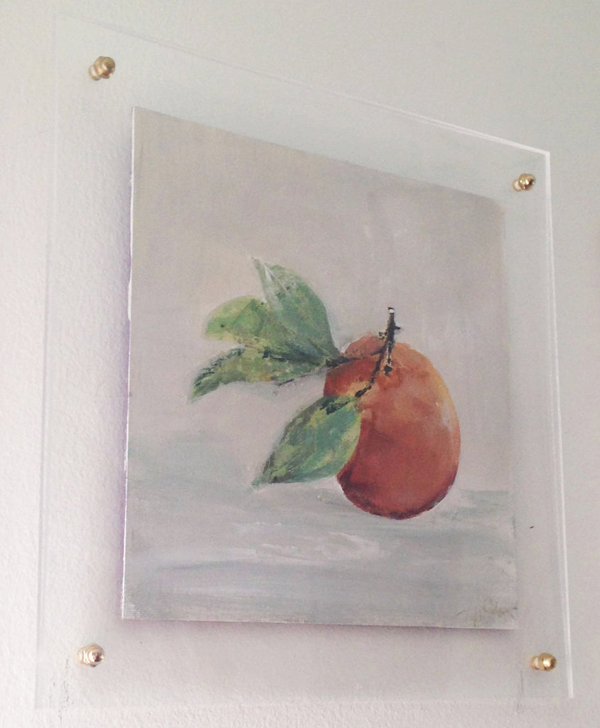 acrylic and pastel on board, framed in lucite frame with brass fasteners