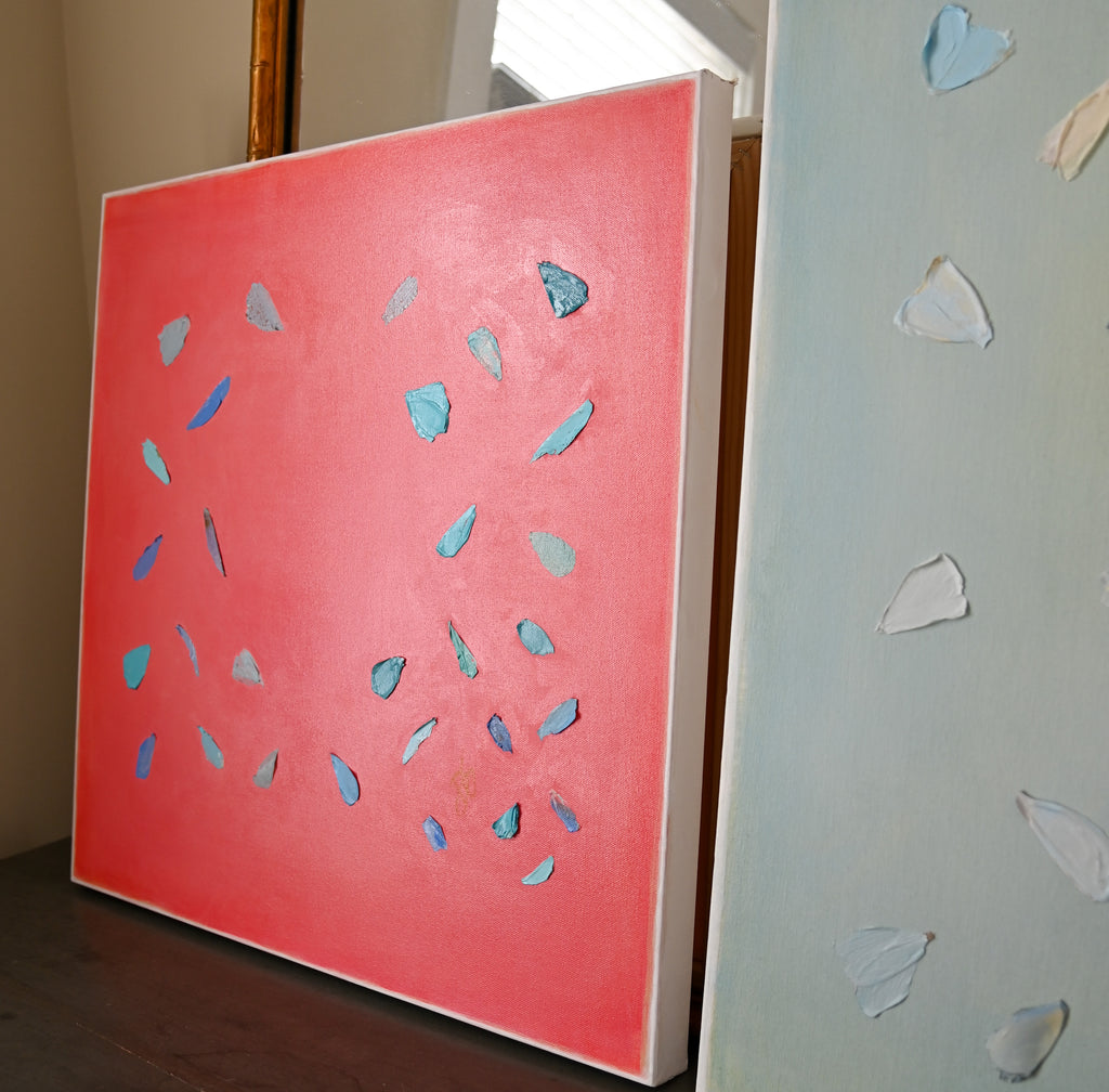 If Diana had a personal motto it would be “everything can be a treasure hunt if you try hard enough.” Growing up in Baton Rouge, Louisiana, Diana was fully trained in the art of the hunt by her mother who would drop all plans at the glimmer of an “Estate Sale Today” sign. Fortunately, this past time led to the ultimate find of a library of art and painting books which sent her in to a rabbit hole of learning about theories, lines, composition, and color that she hasn’t looked back from since. After years of self-study and practice, Diana launched her first collection to the public in fall of 2020. Her first series entitled “The Butterfly Collection” is built upon layers of color, glazers and washes carefully balanced to find the calm in the chaos. Diana names each piece after her favorite inspirational influences from authors to beaches to everyday people in her life that constantly bring her back to awe and wonder. Diana resides in Mount Pleasant, South Carolina with her husband Gabe, and her three boys Dixon, Charles, and Henry. If you are in the area and see a girl with paint chips on her hand digging for shells in the beach or through a stack of books in front of the library, please say hello!