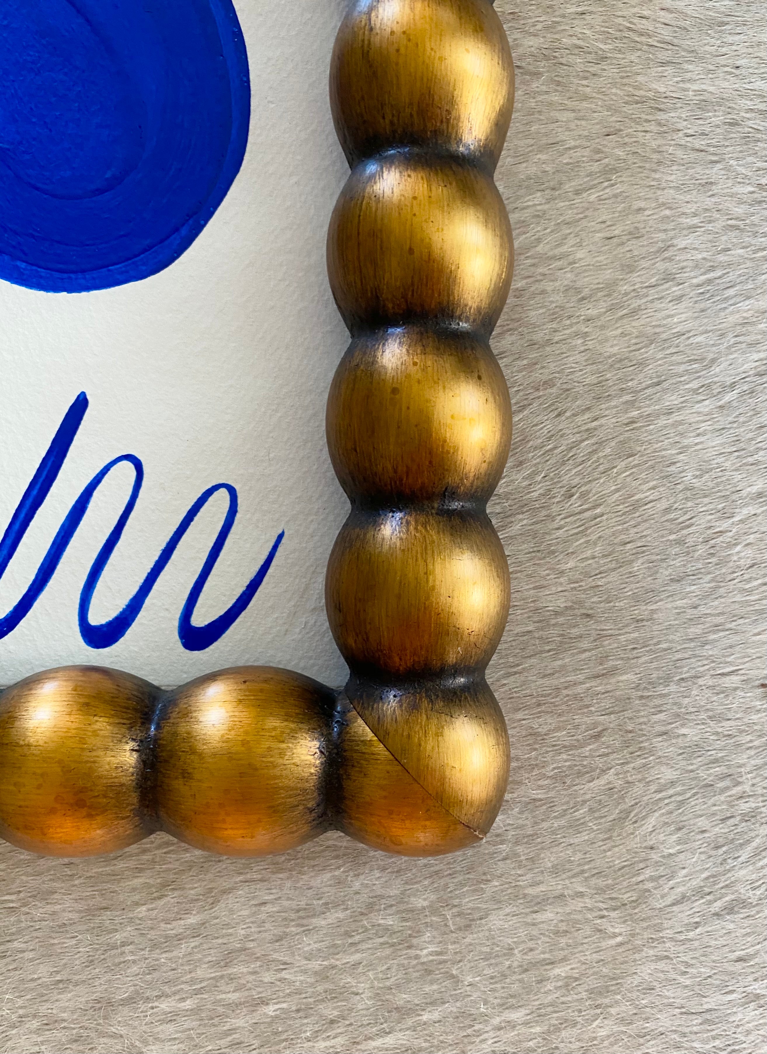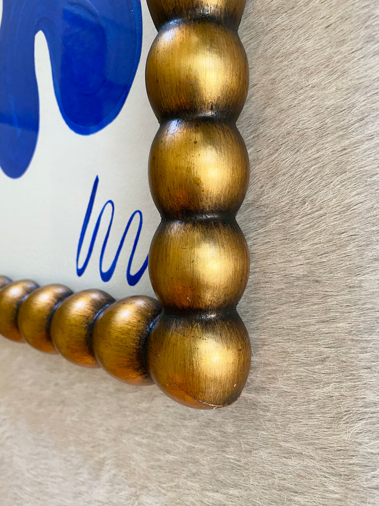 acrylic on heavyweight paper, in brushed gilded gold beaded frame
