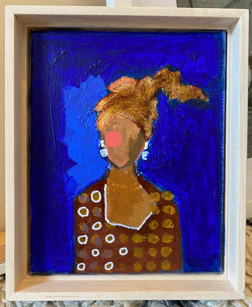 acrylic on canvas, in light wood floater frame