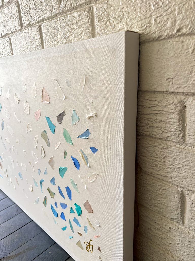 If Diana had a personal motto it would be “everything can be a treasure hunt if you try hard enough.” Growing up in Baton Rouge, Louisiana, Diana was fully trained in the art of the hunt by her mother who would drop all plans at the glimmer of an “Estate Sale Today” sign. Fortunately, this past time led to the ultimate find of a library of art and painting books which sent her in to a rabbit hole of learning about theories, lines, composition, and color that she hasn’t looked back from since. After years of self-study and practice, Diana launched her first collection to the public in fall of 2020. Her first series entitled “The Butterfly Collection” is built upon layers of color, glazers and washes carefully balanced to find the calm in the chaos. Diana names each piece after her favorite inspirational influences from authors to beaches to everyday people in her life that constantly bring her back to awe and wonder. Diana resides in Mount Pleasant, South Carolina with her husband Gabe, and her three boys Dixon, Charles, and Henry. If you are in the area and see a girl with paint chips on her hand digging for shells in the beach or through a stack of books in front of the library, please say hello!