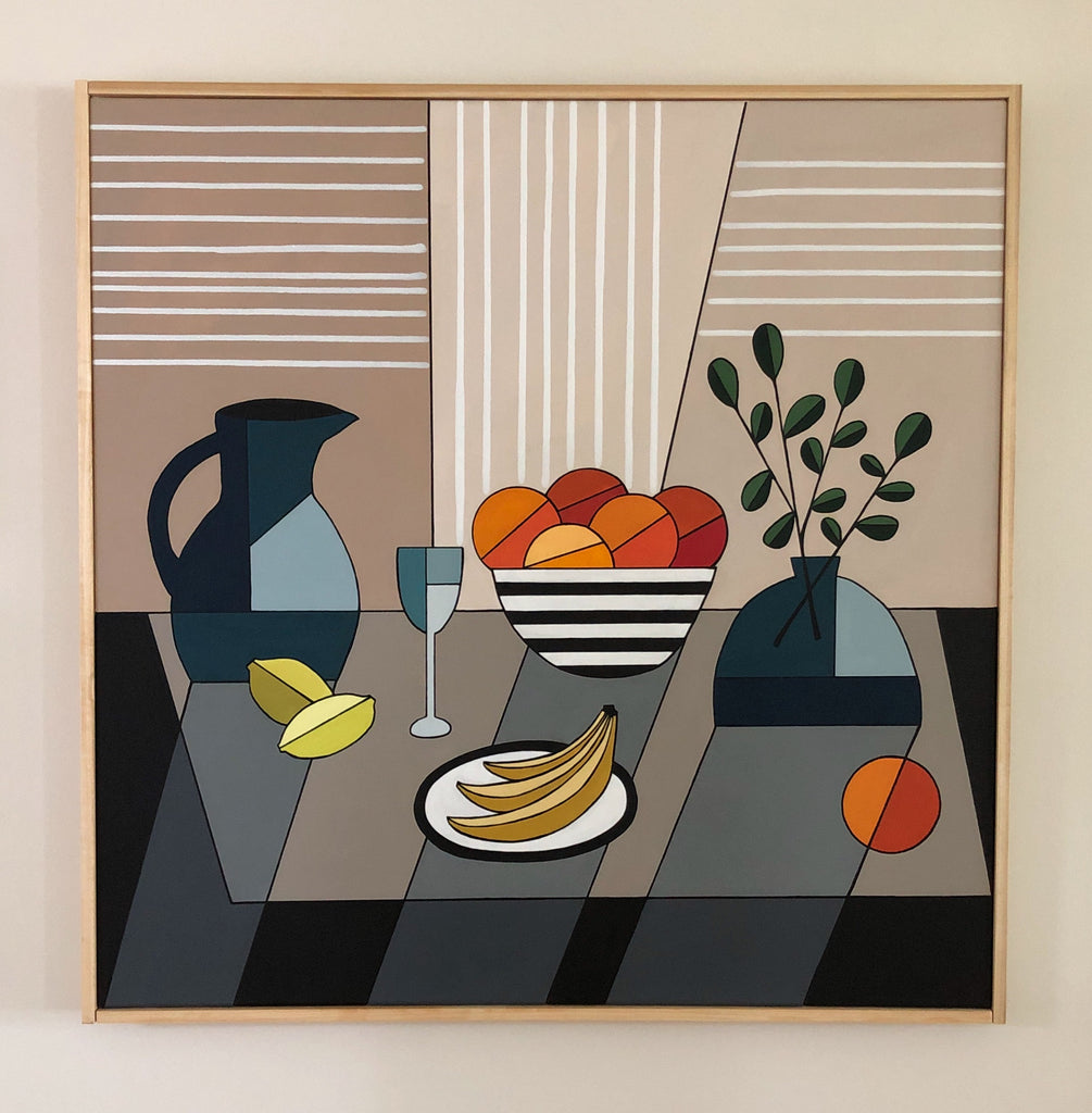 Cindy DeAntonio is a mixed media artist who uses distinct lines and shapes to create her unique and highly recognizable style. Her work is comprised of abstracts, modern interpretations of traditional lowcountry landscapes, and cubist inspired still lifes. She draws inspiration from a variety of sources including fashion, design and her natural surroundings. Cindys love of bold colors and balance are apparent in each one of her pieces. Her work have been featured in Coastal Living, Serena and Lily, Garden and Gun, and SIP magazine. Cindy grew up in Columbia, South Carolina and earned a Studio Art degree from the University of South Carolina. She currently lives on Isle of Palms, SC with her family.