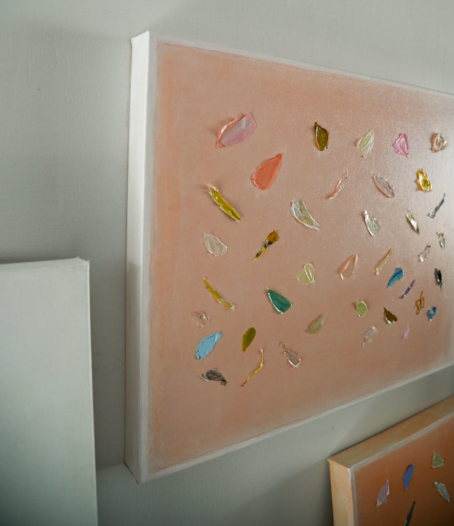 If Diana had a personal motto it would be “everything can be a treasure hunt if you try hard enough.” Growing up in Baton Rouge, Louisiana, Diana was fully trained in the art of the hunt by her mother who would drop all plans at the glimmer of an “Estate Sale Today” sign. Fortunately, this past time led to the ultimate find of a library of art and painting books which sent her in to a rabbit hole of learning about theories, lines, composition, and color that she hasn’t looked back from since. After years of self-study and practice, Diana launched her first collection to the public in fall of 2020. Her first series entitled “The Butterfly Collection” is built upon layers of color, glazers and washes carefully balanced to find the calm in the chaos. Diana names each piece after her favorite inspirational influences from authors to beaches to everyday people in her life that constantly bring her back to awe and wonder. Diana resides in Mount Pleasant, South Carolina with her husband Gabe, and her three boys Dixon, Charles, and Henry. If you are in the area and see a girl with paint chips on her hand digging for shells in the beach or through a stack of books in front of the library, please say hello!
