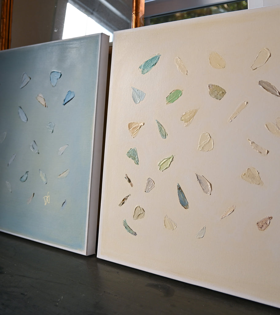 If Diana had a personal motto it would be “everything can be a treasure hunt if you try hard enough.” Growing up in Baton Rouge, Louisiana, Diana was fully trained in the art of the hunt by her mother who would drop all plans at the glimmer of an “Estate Sale Today” sign. Fortunately, this past time led to the ultimate find of a library of art and painting books which sent her in to a rabbit hole of learning about theories, lines, composition, and color that she hasn’t looked back from since. After years of self-study and practice, Diana launched her first collection to the public in fall of 2020. Her first series entitled “The Butterfly Collection” is built upon layers of color, glazers and washes carefully balanced to find the calm in the chaos. Diana names each piece after her favorite inspirational influences from authors to beaches to everyday people in her life that constantly bring her back to awe and wonder. Diana resides in Mount Pleasant, South Carolina with her husband Gabe, and her three boys Dixon, Charles, and Henry. If you are in the area and see a girl with paint chips on her hand digging for shells in the beach or through a stack of books in front of the library, please say hello!