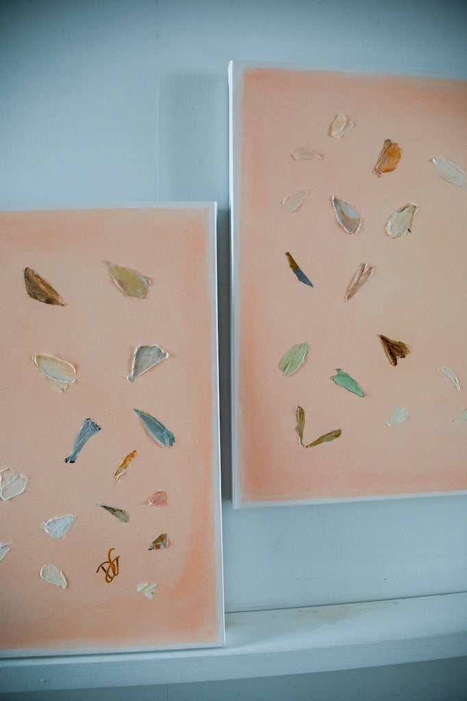 If Diana had a personal motto it would be “everything can be a treasure hunt if you try hard enough.” Growing up in Baton Rouge, Louisiana, Diana was fully trained in the art of the hunt by her mother who would drop all plans at the glimmer of an “Estate Sale Today” sign. Fortunately, this past time led to the ultimate find of a library of art and painting books which sent her in to a rabbit hole of learning about theories, lines, composition, and color that she hasn’t looked back from since. After years of self-study and practice, Diana launched her first collection to the public in fall of 2020. Her first series entitled “The Butterfly Collection” is built upon layers of color, glazers and washes carefully balanced to find the calm in the chaos. Diana names each piece after her favorite inspirational influences from authors to beaches to everyday people in her life that constantly bring her back to awe and wonder. Diana resides in Mount Pleasant, South Carolina with her husband Gabe, and her three boys Dixon, Charles, and Henry. If you are in the area and see a girl with paint chips on her hand digging for shells in the beach or through a stack of books in front of the library, please say hello!
