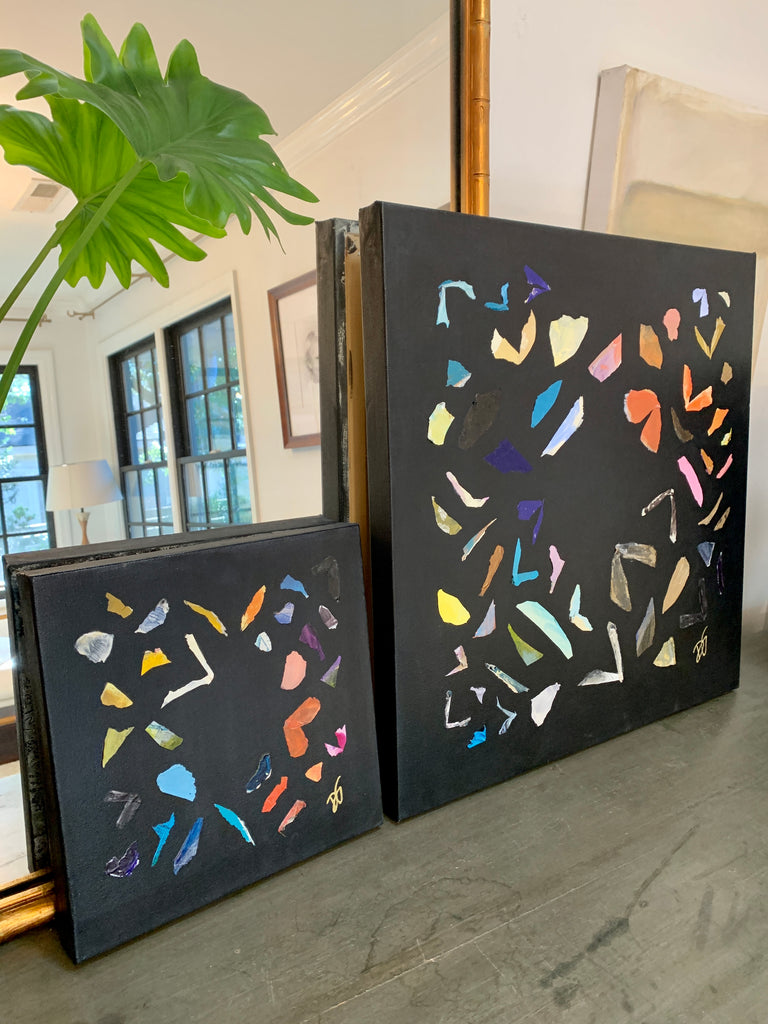 If Diana had a personal motto it would be “everything can be a treasure hunt if you try hard enough.” Growing up in Baton Rouge, Louisiana, Diana was fully trained in the art of the hunt by her mother who would drop all plans at the glimmer of an “Estate Sale Today” sign. Fortunately, this past time led to the ultimate find of a library of art and painting books which sent her in to a rabbit hole of learning about theories, lines, composition, and color that she hasn’t looked back from since. After years of self-study and practice, Diana launched her first collection to the public in fall of 2020. Her first series entitled “The Butterfly Collection” is built upon layers of color, glazers and washes carefully balanced to find the calm in the chaos. Diana names each piece after her favorite inspirational influences from authors to beaches to everyday people in her life that constantly bring her back to awe and wonder. Diana resides in Mount Pleasant, South Carolina with her husband Gabe, and her three boys Dixon, Charles, and Henry. If you are in the area and see a girl with paint chips on her hand digging for shells in the beach or through a stack of books in front of the library, please say hello!