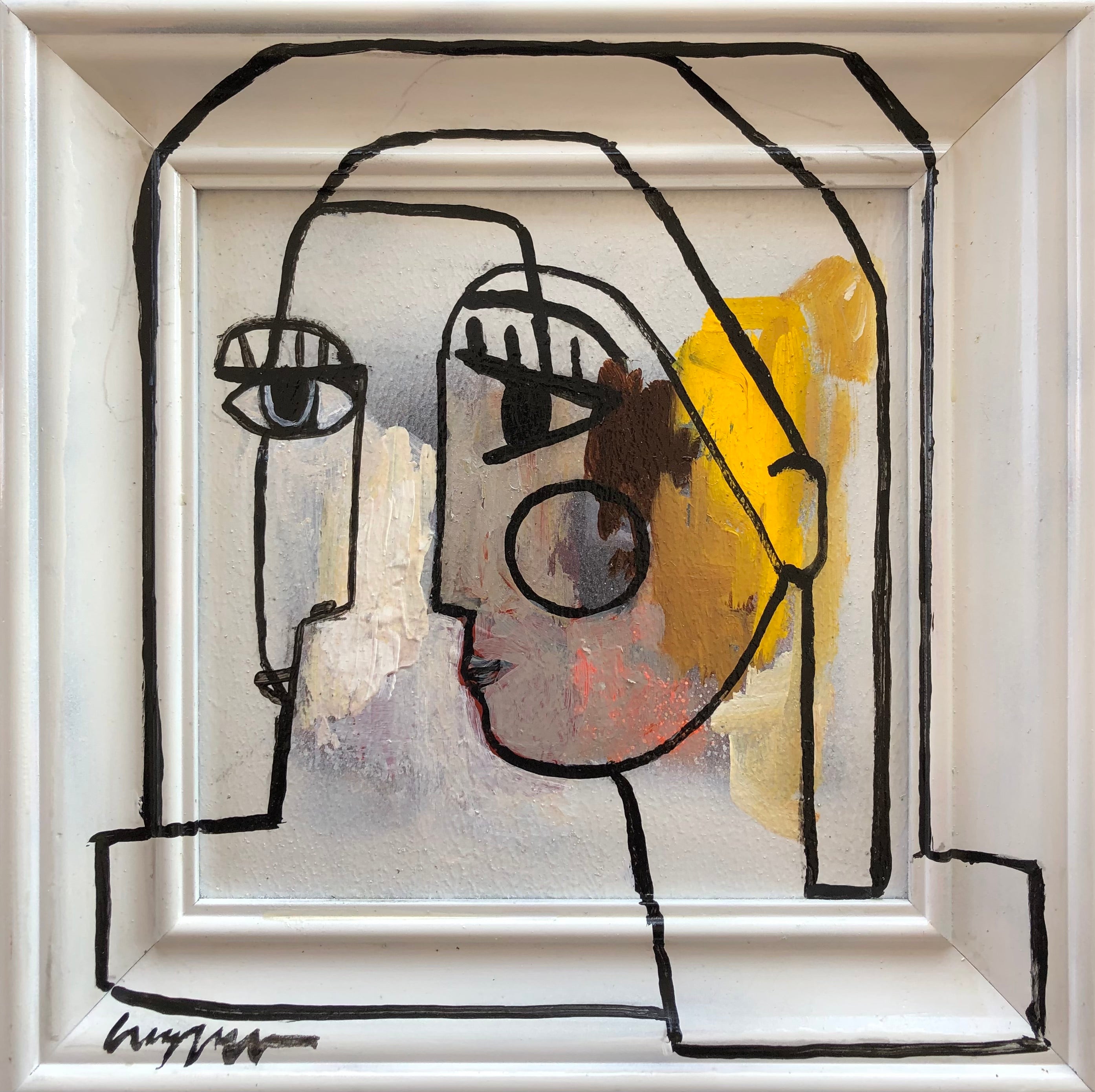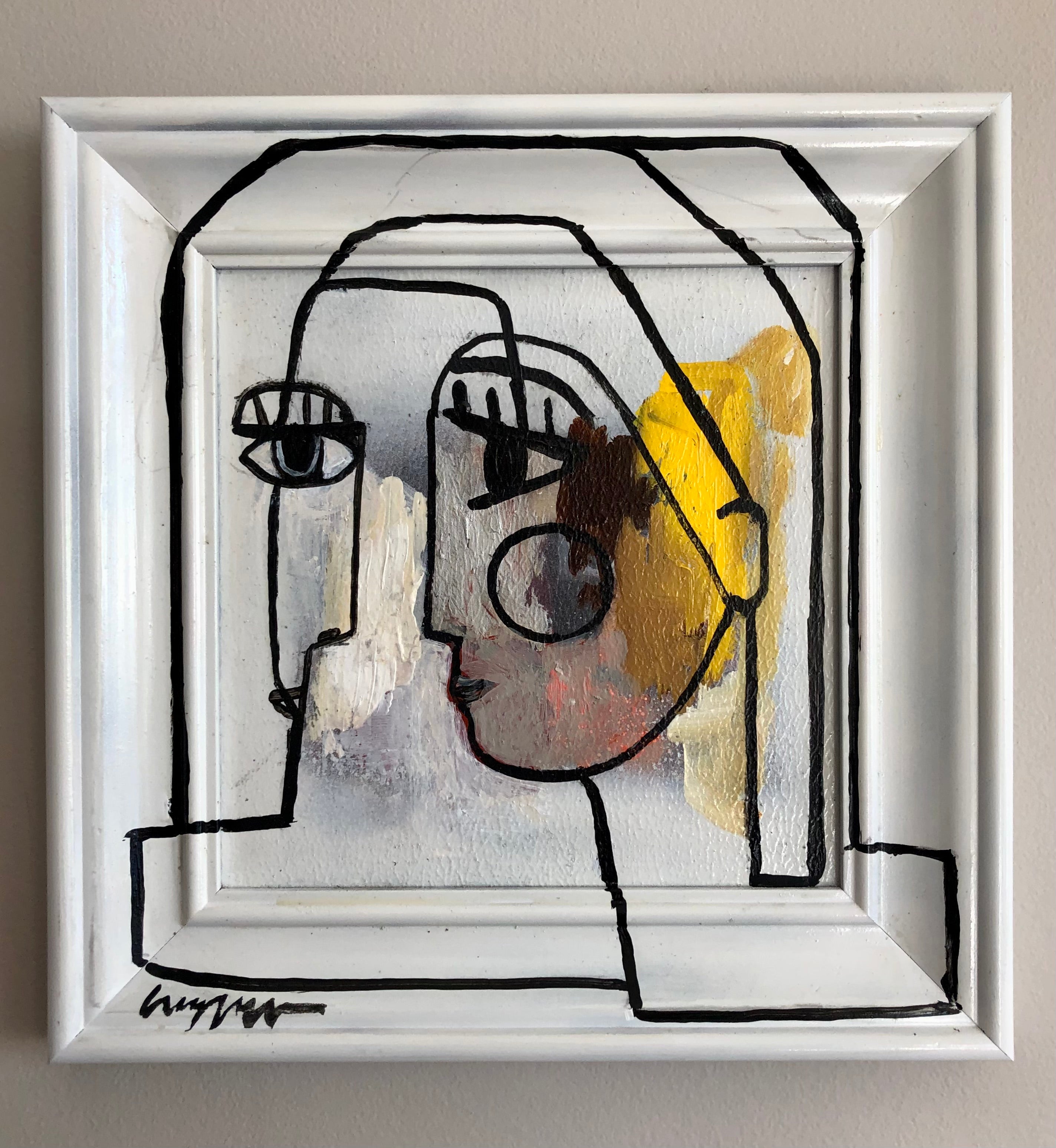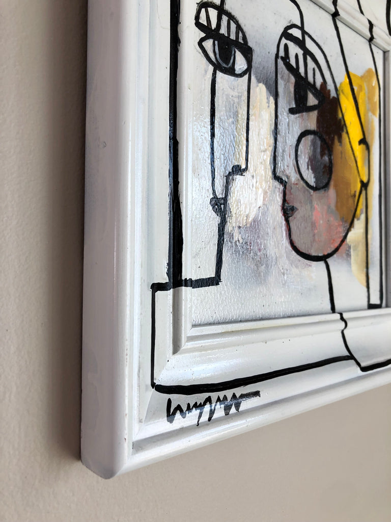 acrylic on painted frame and board